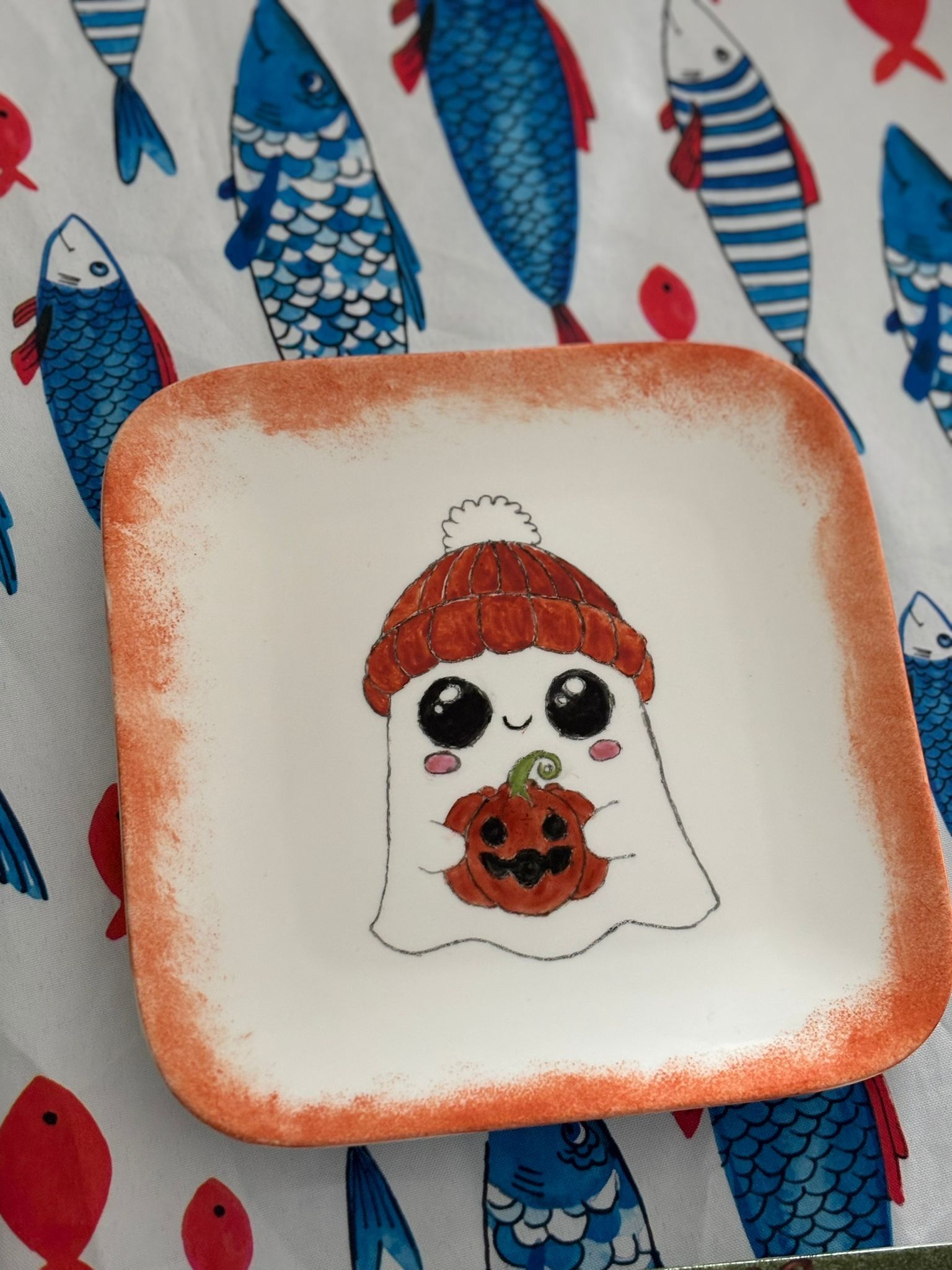 Ik ben verder gaan wandelen en de meiden kwamen in de middag weer thuis. Ze hadden een bord gekregen die oma laatst had gemaakt voor ze! Die kunnen ze alvast gaan gebruiken.