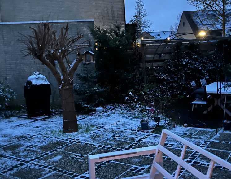 Zondag werden we wakker met een beetje sneeuw! Het was niet veel, maar de kinderen gingen meteen naar buiten om een kleine sneeuwpop te maken... toch leuk!