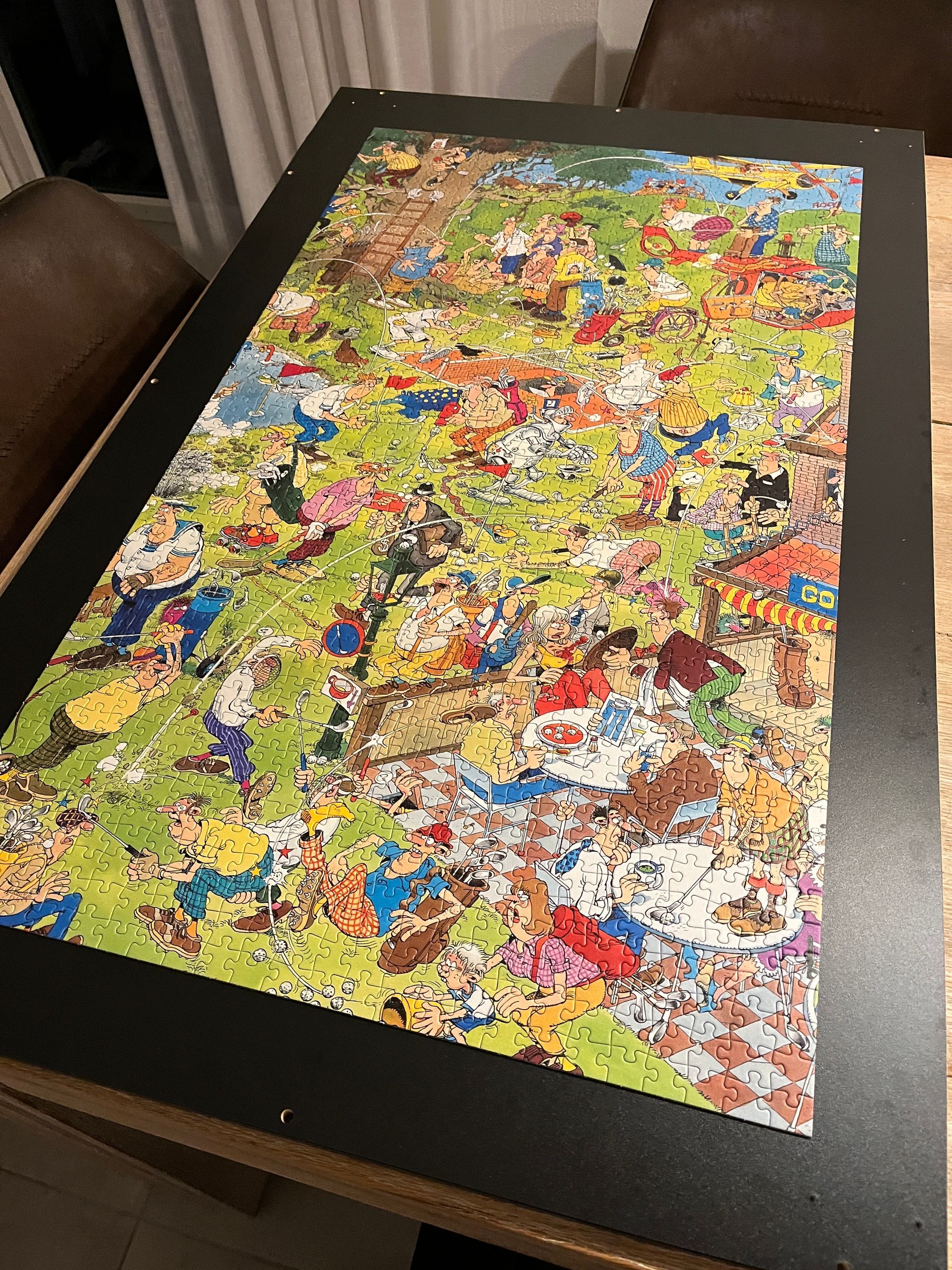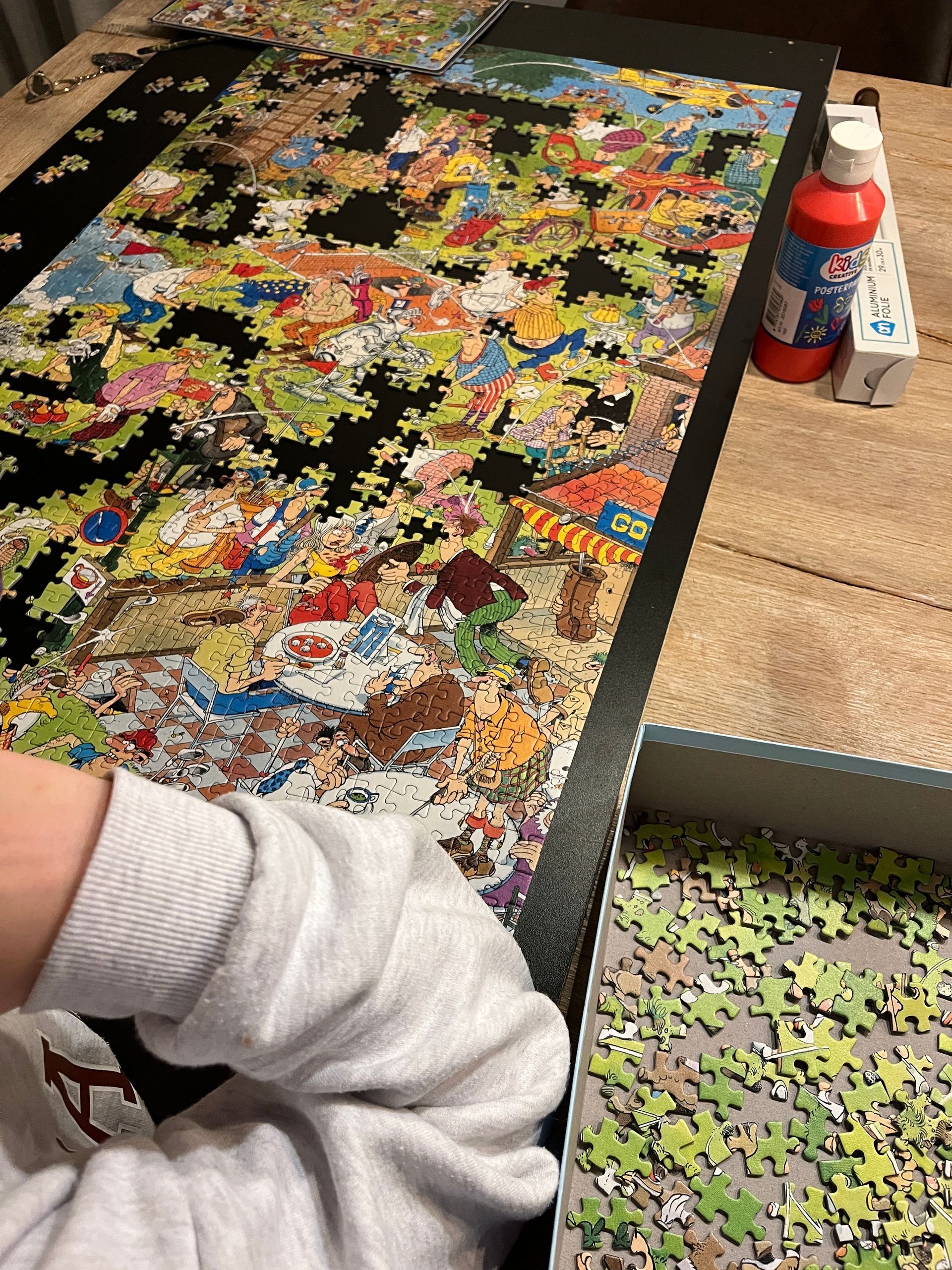 Na het eten gingen we aan de slag met de Jan van Haasteren puzzel (affiliate link) Met deze specifieke puzzel waren we al een tijd bezig, hij lag al weken op tafel en het vorderde niet zo snel door alle drukte. De meiden hielpen nu opeens veel meer mee en zo ging het opeens wel erg snel, haha!