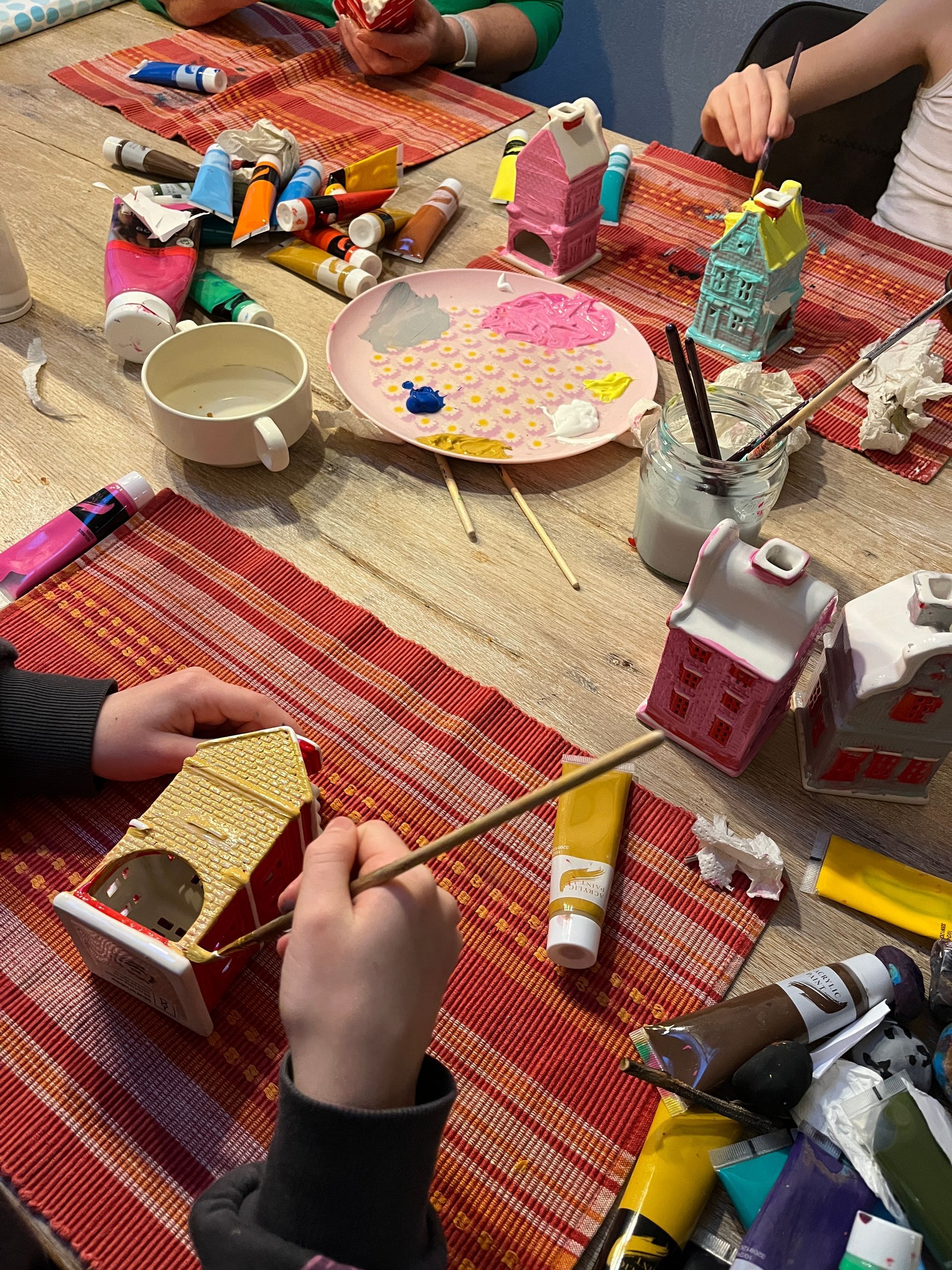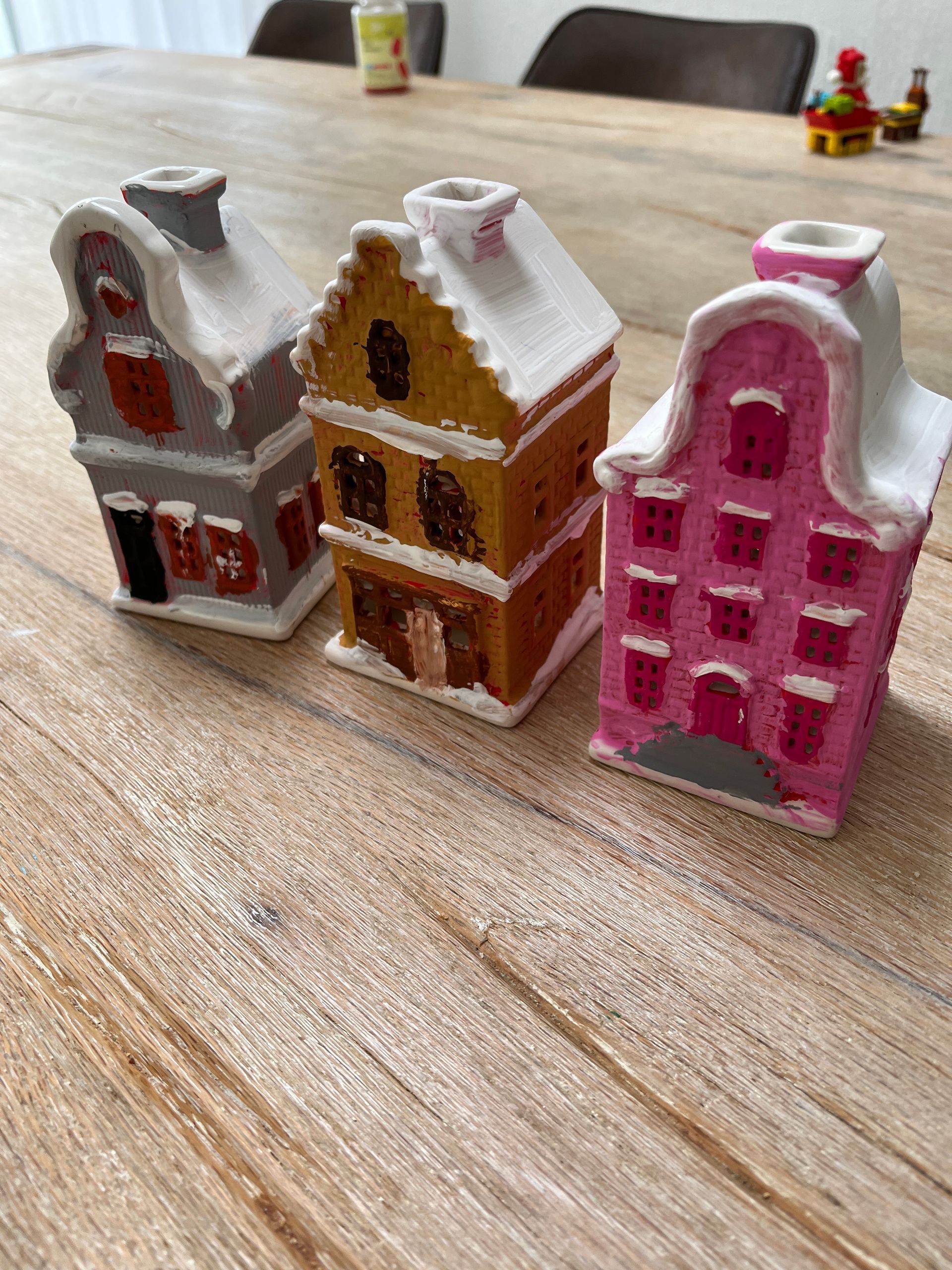 Aan het eind van de middag kwamen mijn ouders langs. Mijn moeder had kersthuisjes mee die ze van iemand gekregen had en die konden lekker beschilderd worden, ze gingen dus meteen aan de slag. We zouden eigenlijk uit eten gaan, maar de kinderen begonnen ook lekker te hoesten en snotteren, dus dat komt binnenkort nog wel! Nu aten we lekker carpaccio met wat andere hapjes en pizza thuis.