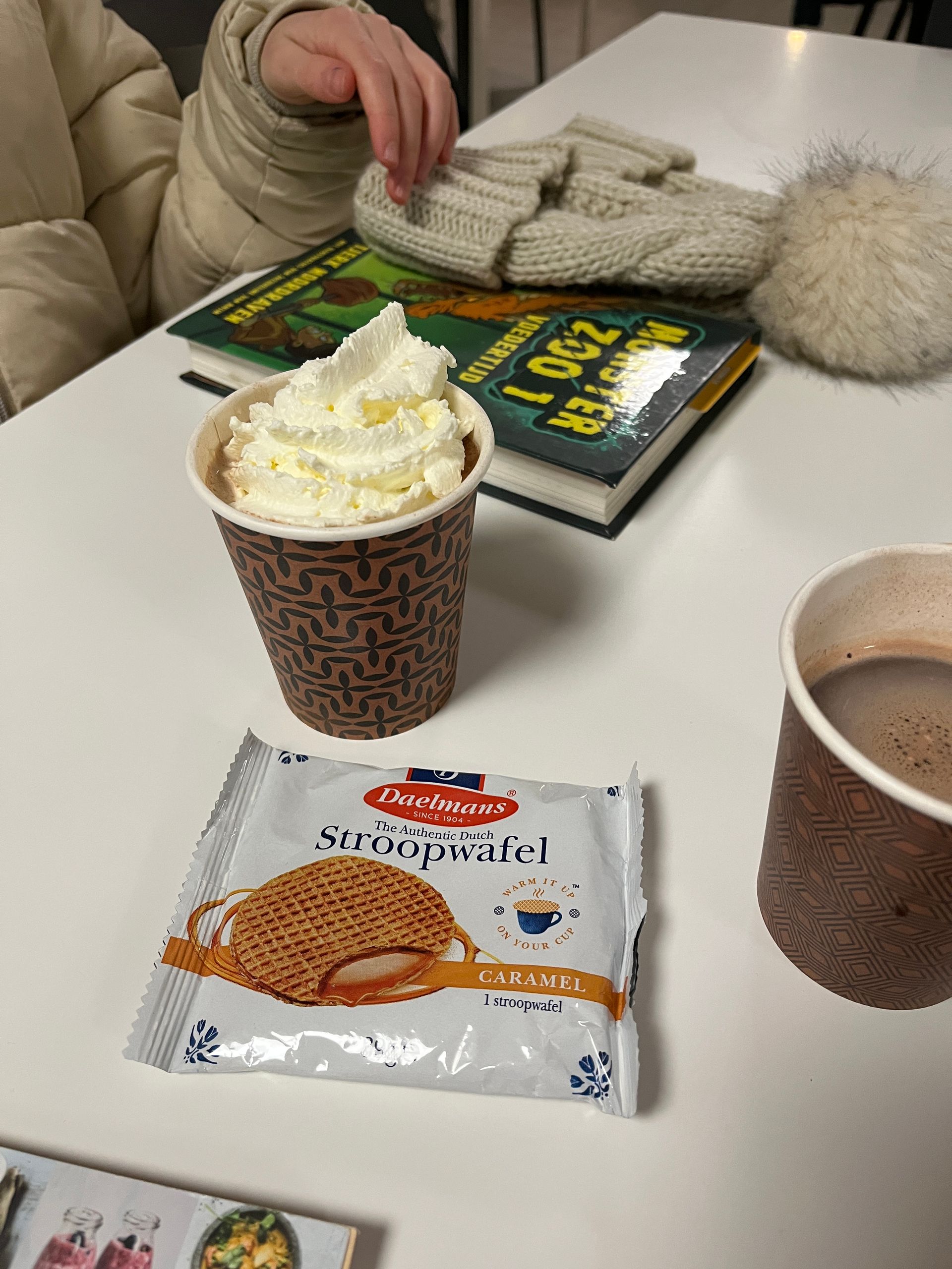 Vrijdagavond aten we vroeg en ging Sara naar atletiek. Dat is nu een kleine uitdaging, want door een afgesloten weg de komende weken moeten we helemaal omrijden. Ik besloot om samen met Sofie te wachten in de kantine. Even lezen, spelletjes spelen en warme chocolademelk, geen straf!