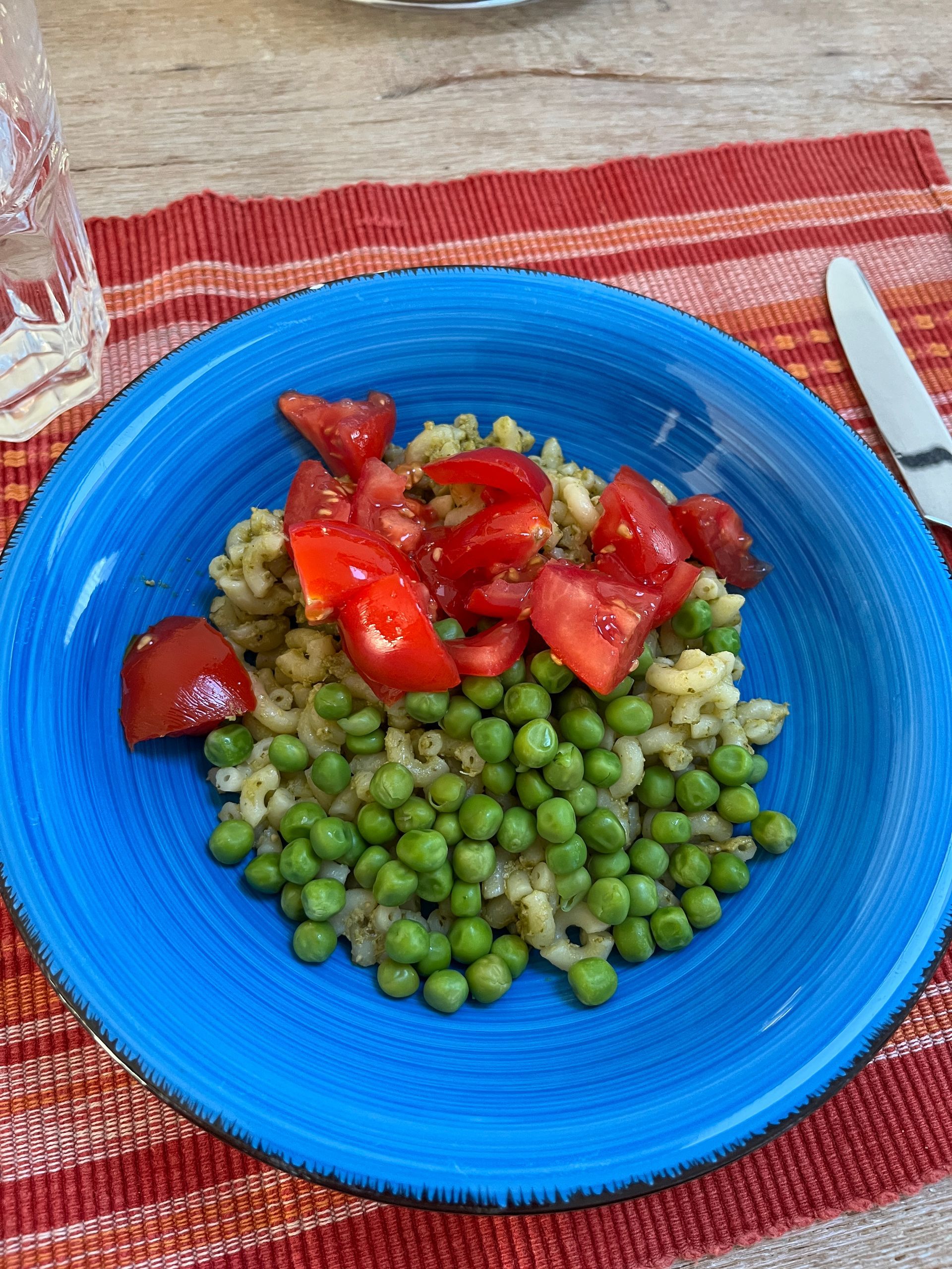 Maandagavond gaat Thijs lekker koken. Hij maakt deze keer pasta pesto met doperwten. Voor ons snij ik er nog lekker wat verse tomaten uit de tuin bij... Dit is een simpel gerecht en hij kan dit inmiddels vrijwel zonder hulp maken... Het is weer erg lekker.
