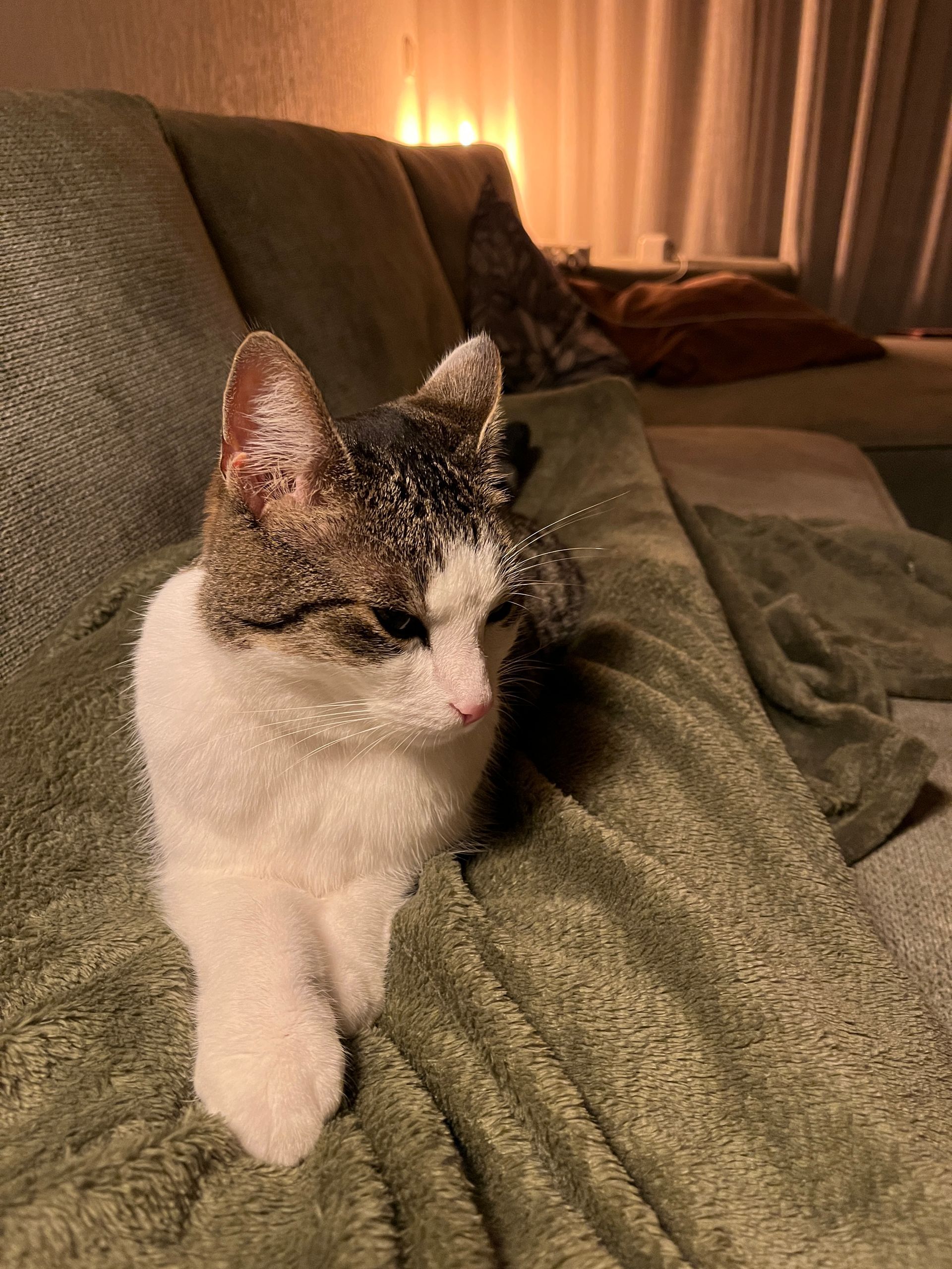 Dinsdagochtend ga ik weer aan het werk... Onze kat Bobby is het er niet helemaal mee eens.. nu het kouder wordt vindt hij het altijd fijn om lekker op de bank te liggen bij ons, maar ik moet toch echt aan de slag, dus hij moet even geduld hebben. ;)