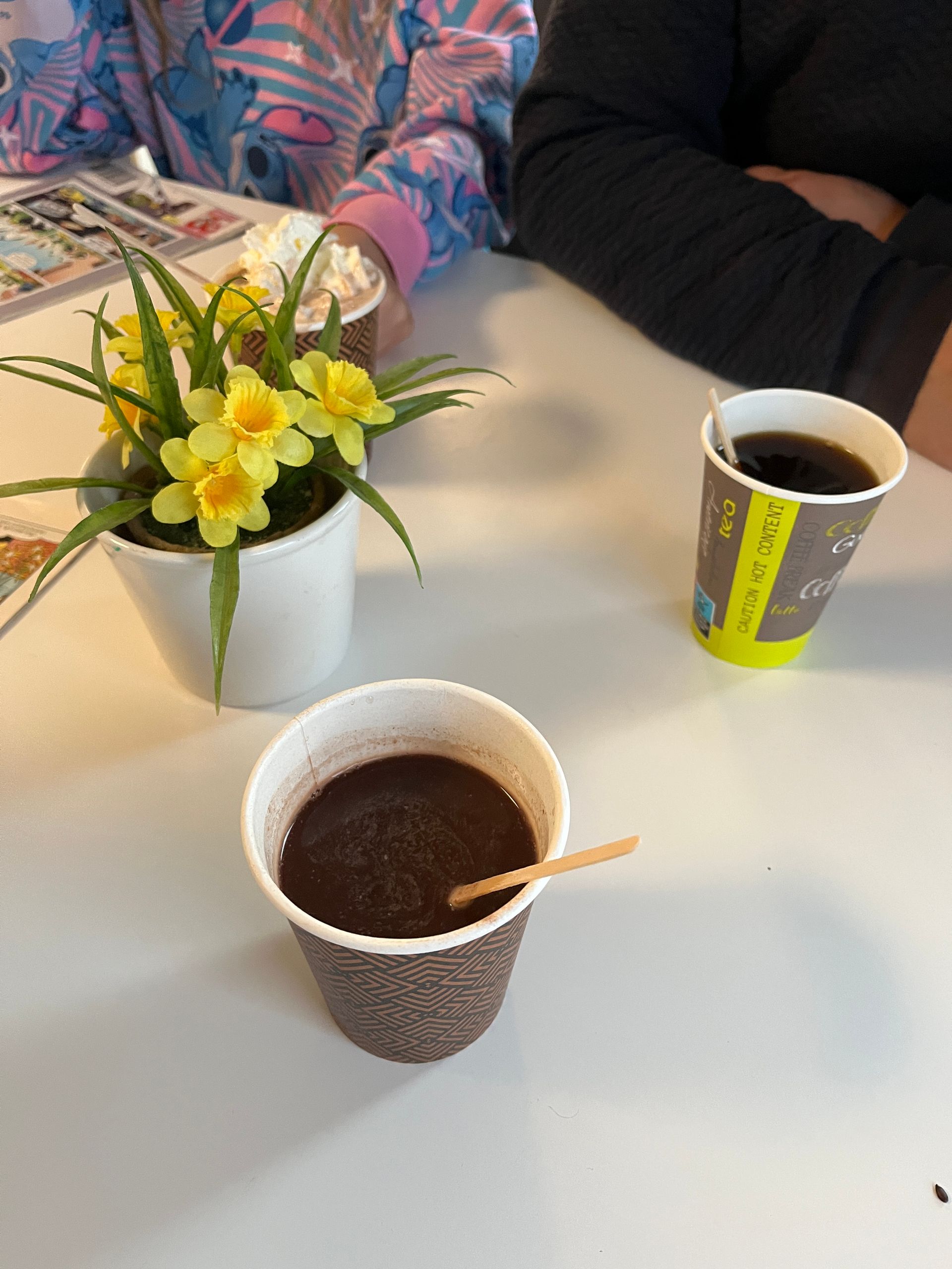 Vrijdagavond gaat Sara trainen en we halen haar met zijn allen op. We gaan iets eerder weg, omdat er drukte wordt verwacht van een voetbalwedstrijd in de buurt... We zijn alsnog lekker op tijd, dus er is nog tijd voor koffie / warme chocolademelk.