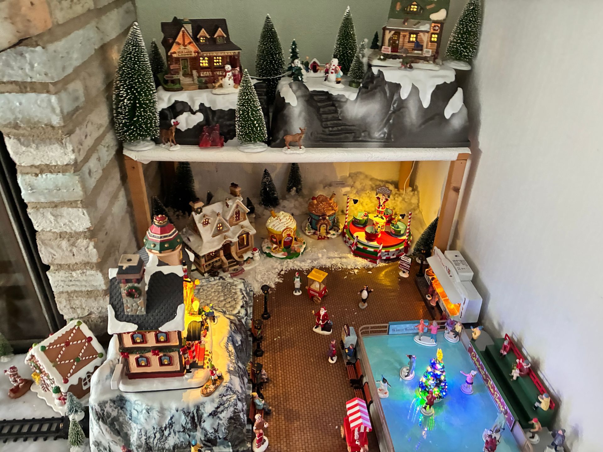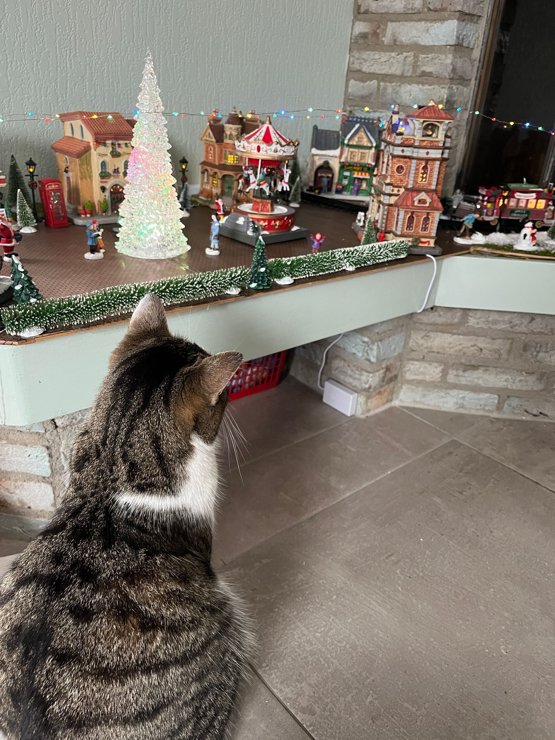 Dustin ging verder aan de slag om zijn kerstdorp helemaal op te bouwen. Lekker vroeg, maar hij is er altijd heel blij mee en met het slechte weer was het ook de ideale dag! Onze Bobby vond het ook erg interessant... We hebben ook een trein die heen en weer rijdt en die wordt natuurlijk in de gaten gehouden ;)