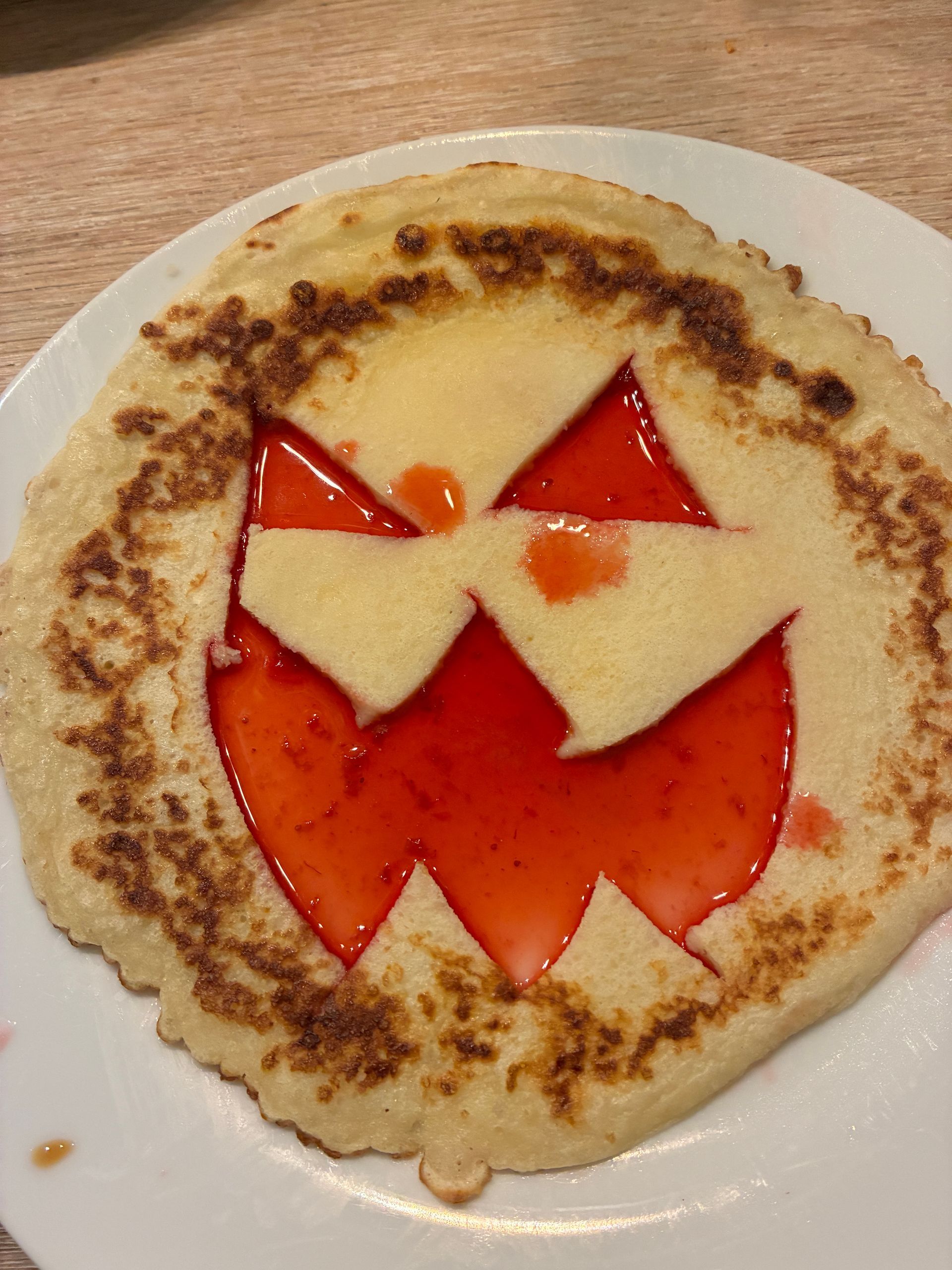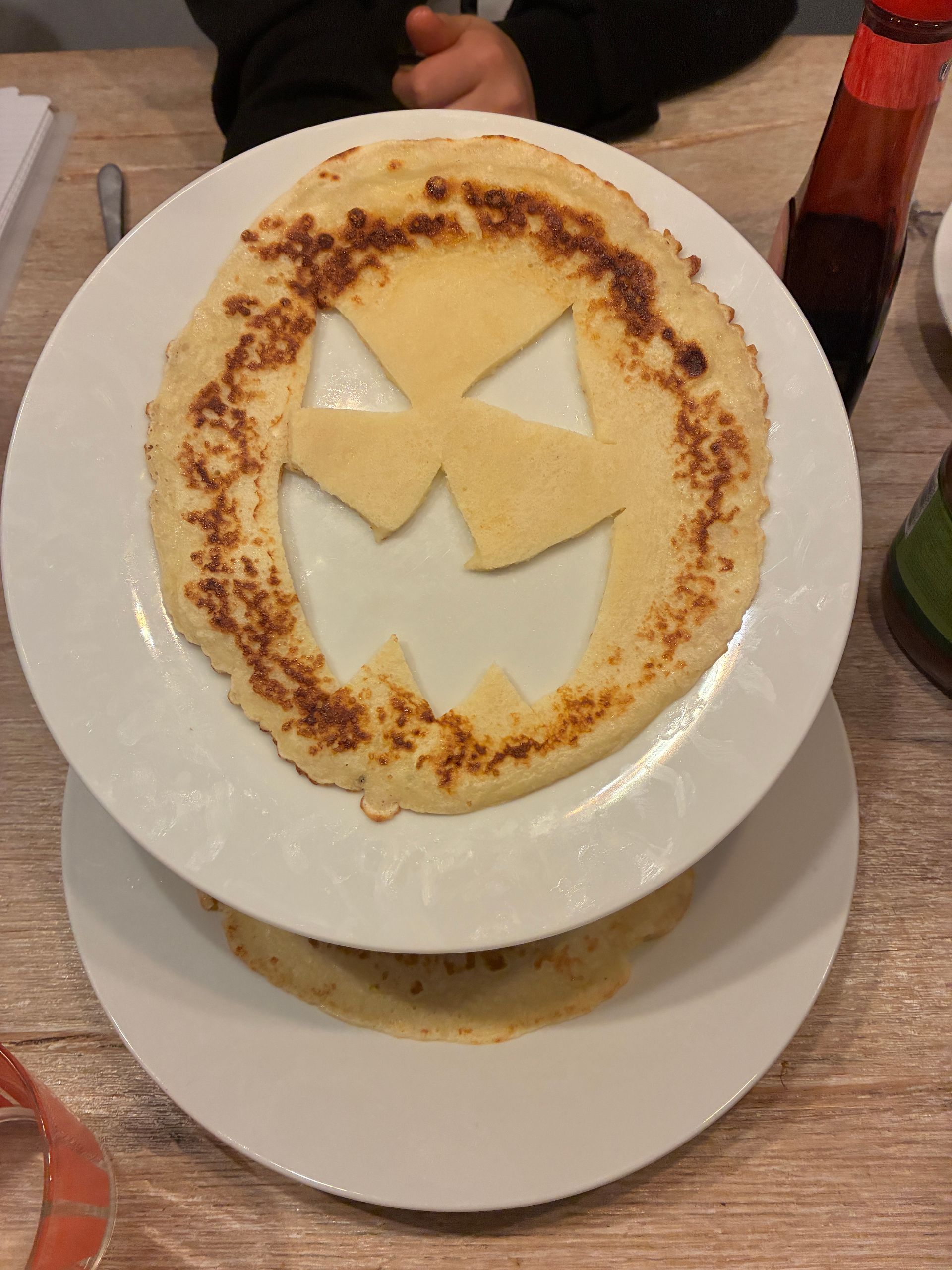 We sloten de dag af met Halloween pannenkoeken en we deden verstoppertje waarbij je de zoeker moest laten schrikken.. wat hebben we gelachen!