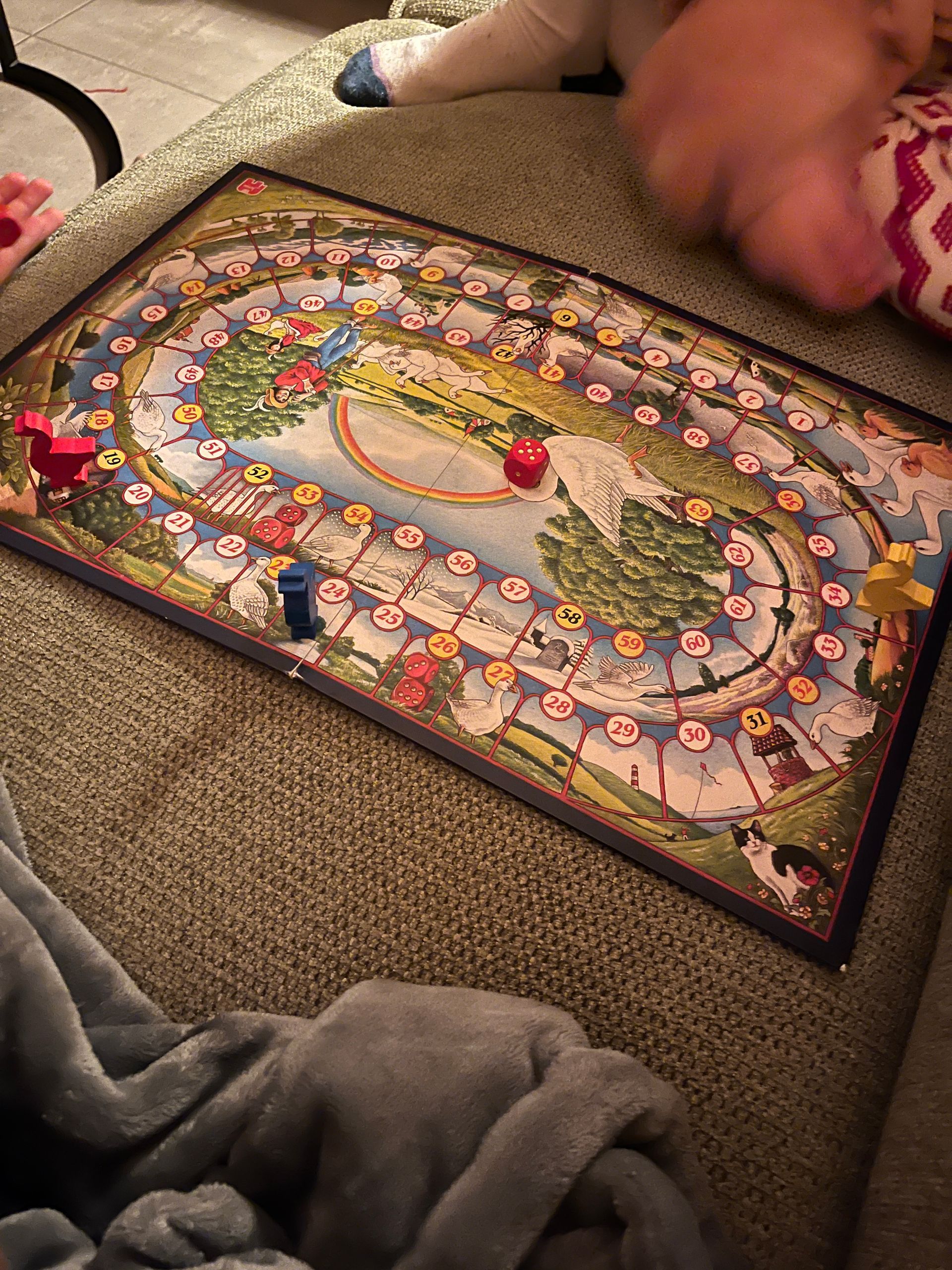 Na het avondeten deed ik met Sofie een spelletje ganzenbord op de bank... De meiden waren echt kapot, maar een spelletje was nog wel leuk om even te doen voordat ze naar bed gingen.