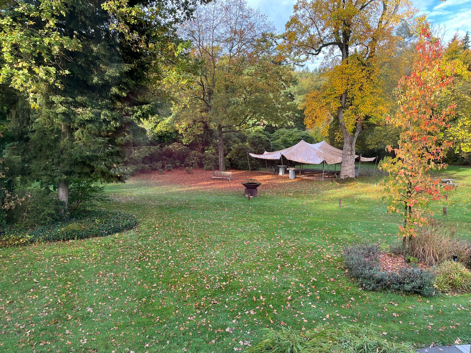 De volgende ochtend waren we op tijd wakker. Ik slaap altijd vrij slecht in hotels, dus vroeg opstaan is dan ook geen probleem... kijk eens wat een prachtige herfstkleuren allemaal! Snel even douchen en op naar het ontbijt.