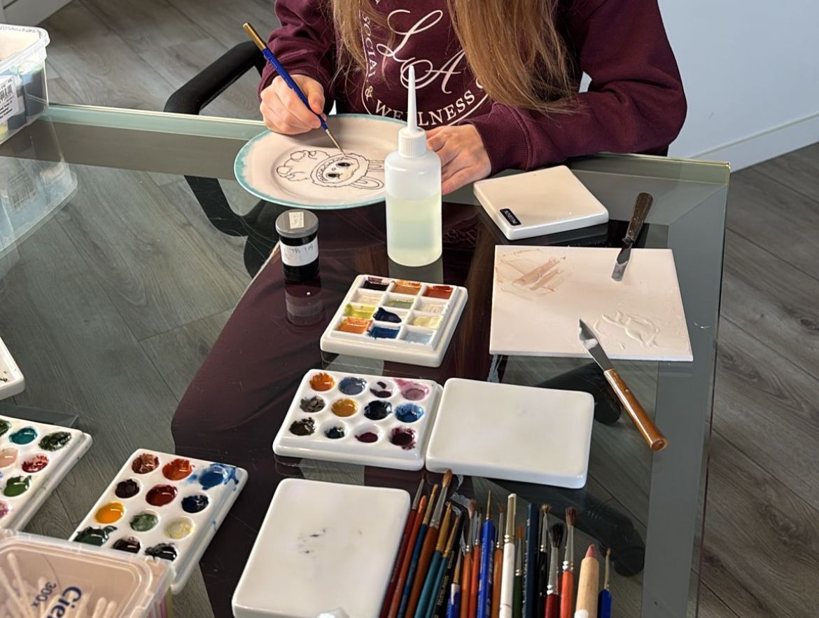 Bij opa en oma vermaakt ze zich onder andere met het beschilderen van een Labubu bord.. super leuk!