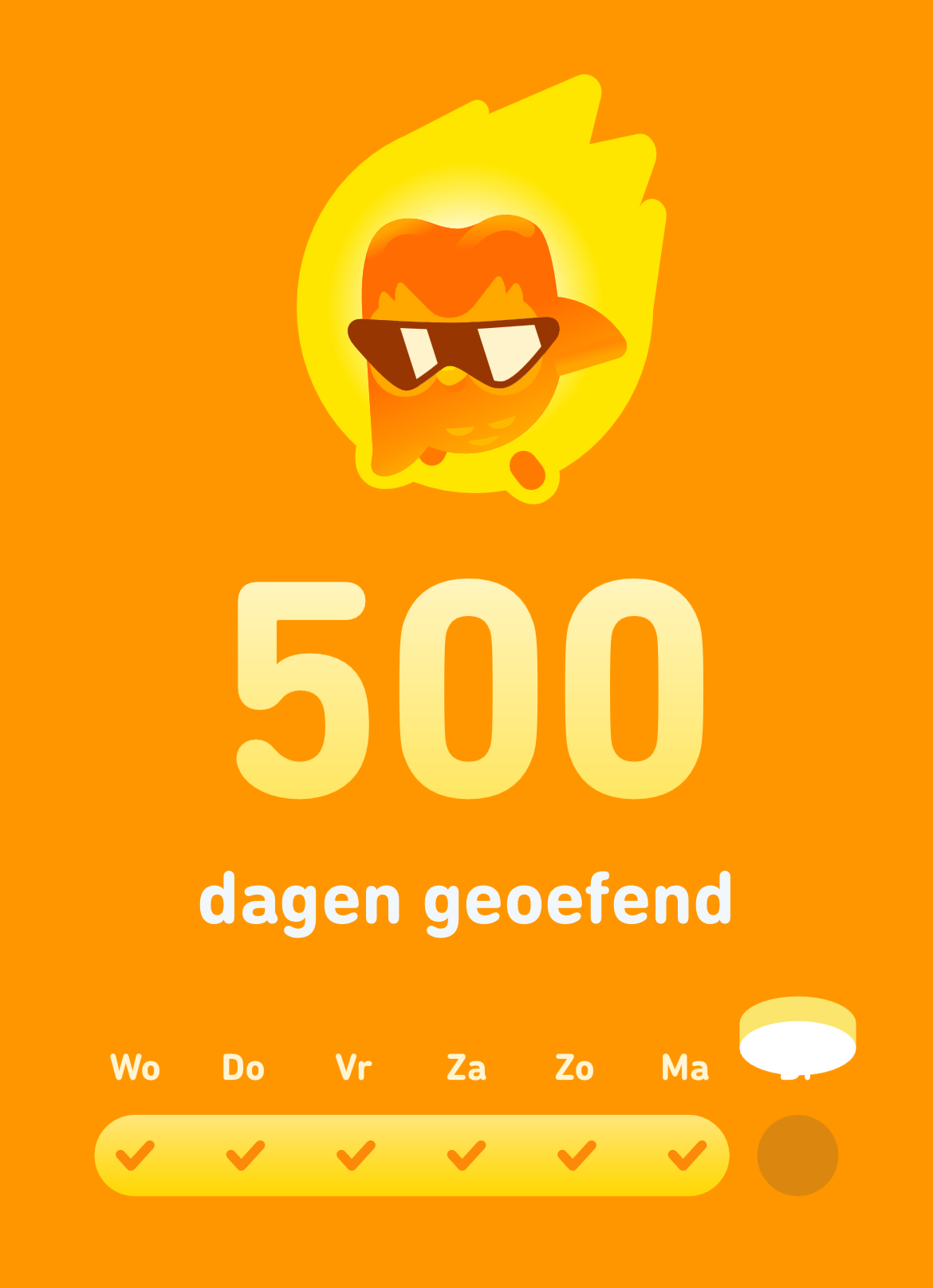 Als ik dinsdag bij school sta te wachten op de meiden, doe ik even een lesje Duolingo. Ik krijg de melding dat ik alweer 500 dagen aan het oefenen ben, super leuk! (En lang, haha)