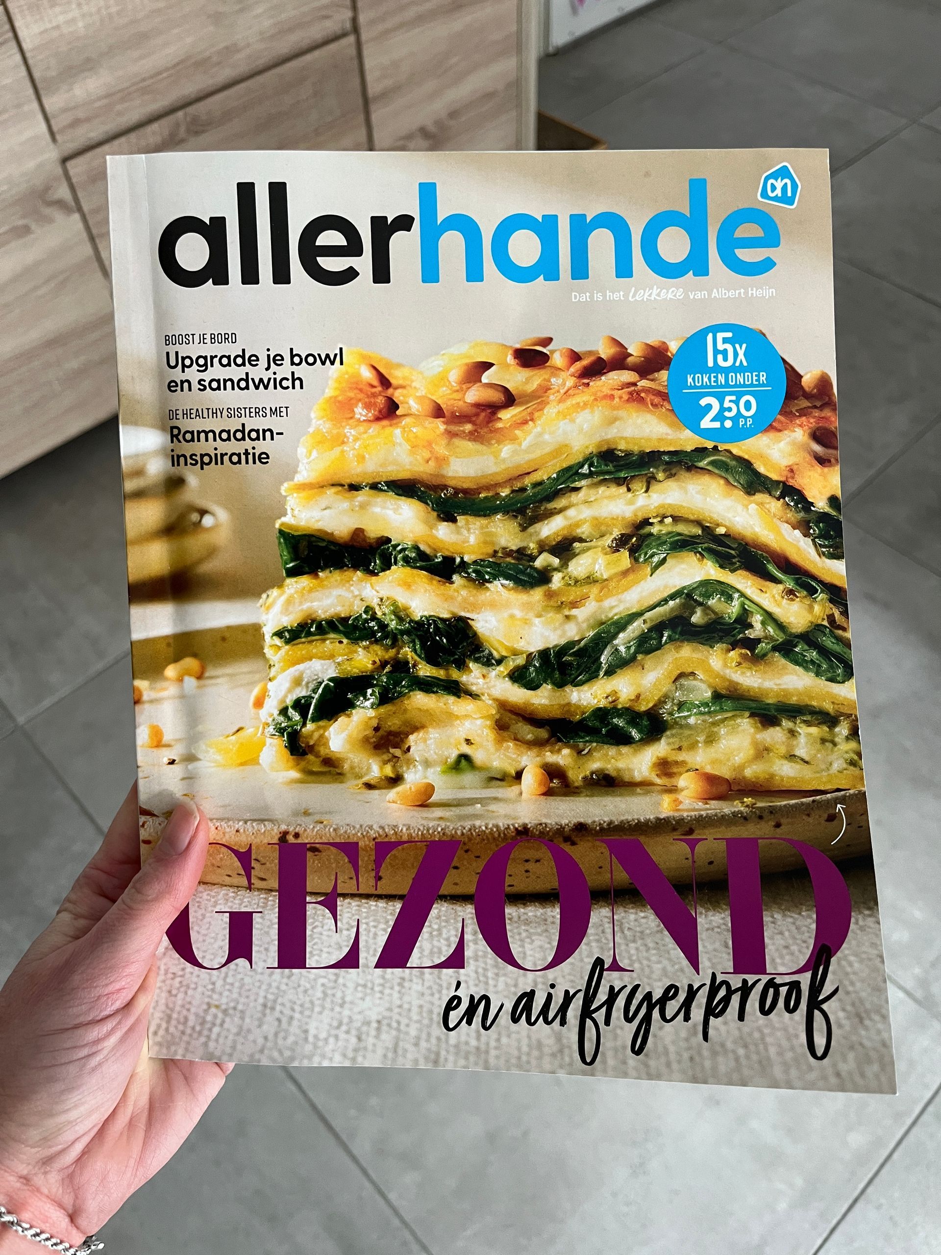 Vrijdagochtend hebben mijn ouders een afspraak bij ons in de buurt, dus ze komen even langs voor een kop koffie. Ze nemen de Allerhande mee, maar ik kom erachter dat ze de versie meehebben waar Sara allemaal recepten uit heeft gescheurd, oeps! De andere bewaar ik maar voor ze, haha!