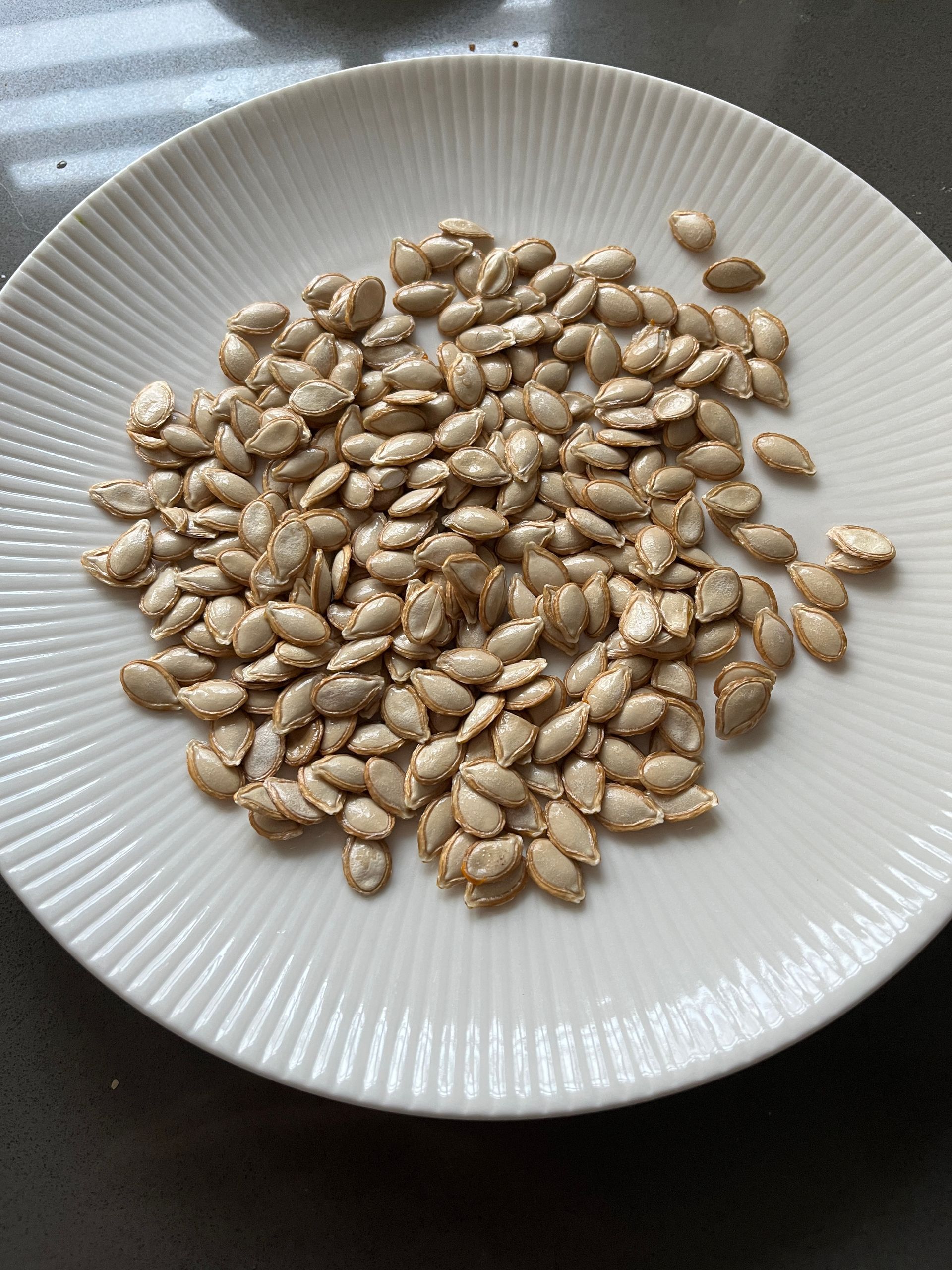 Met het avondeten maak ik onder andere pompoen. De pitten maak ik altijd schoon en rooster ik daarna met een beetje olie, peper en zout in de oven. Dat vinden ze hier erg lekker en zo gooien we ze niet weg.