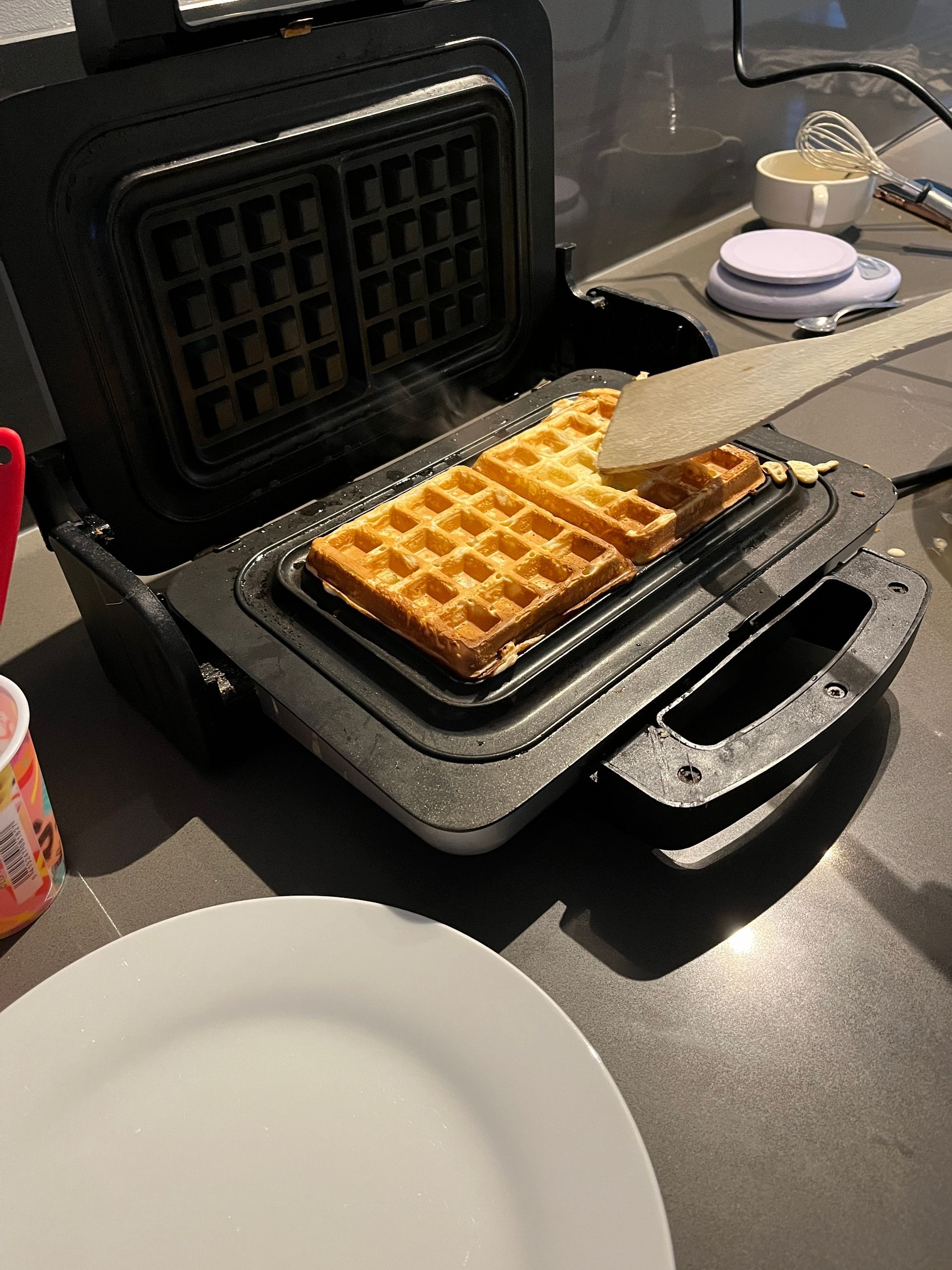 Zaterdagochtend hebben we allemaal lekker uitgeslapen en vroeg Sofie of ze misschien wafels mocht bakken voor het ontbijt... goed idee! Ze zocht zelf het recept op, op de blog en ging aan de slag.