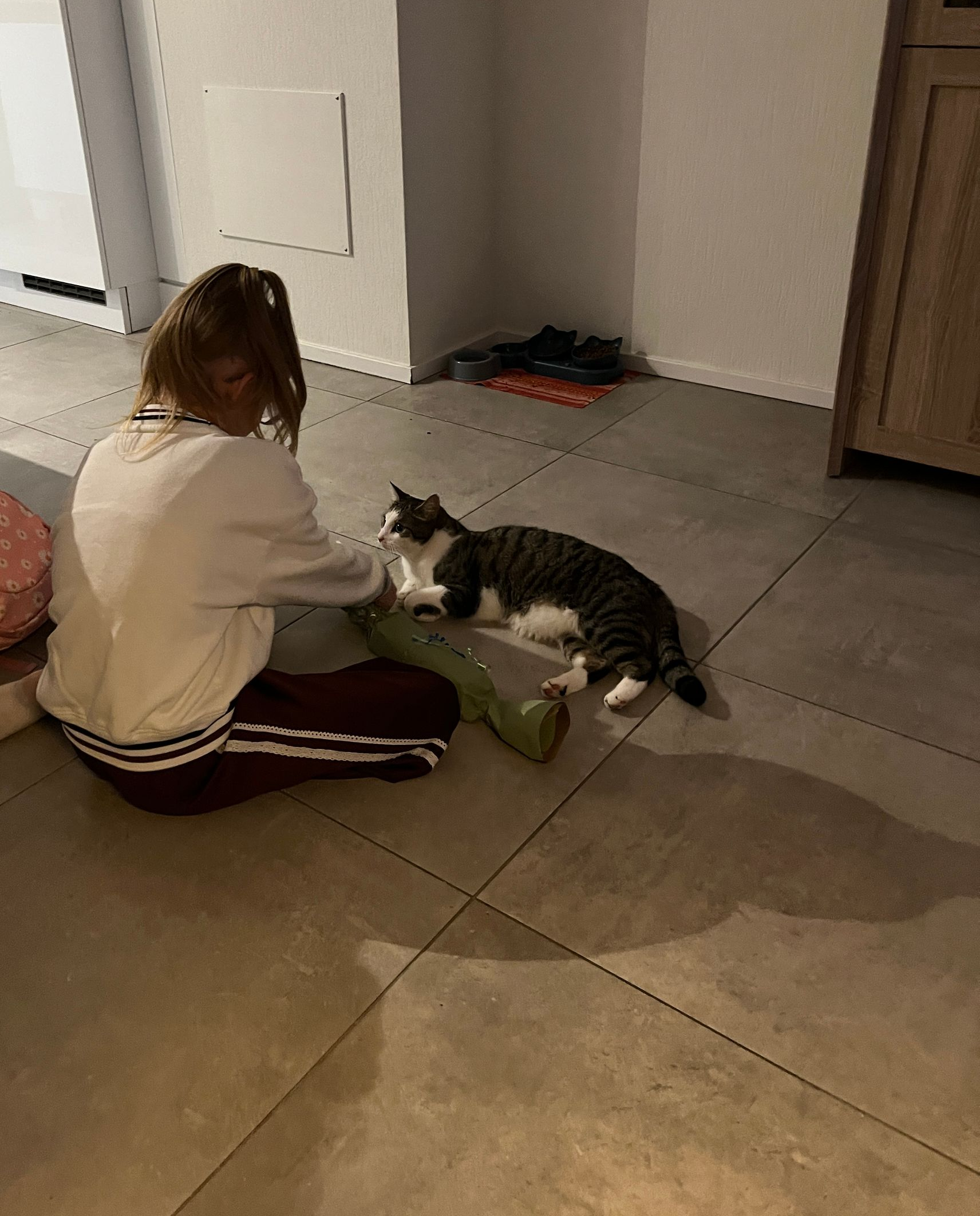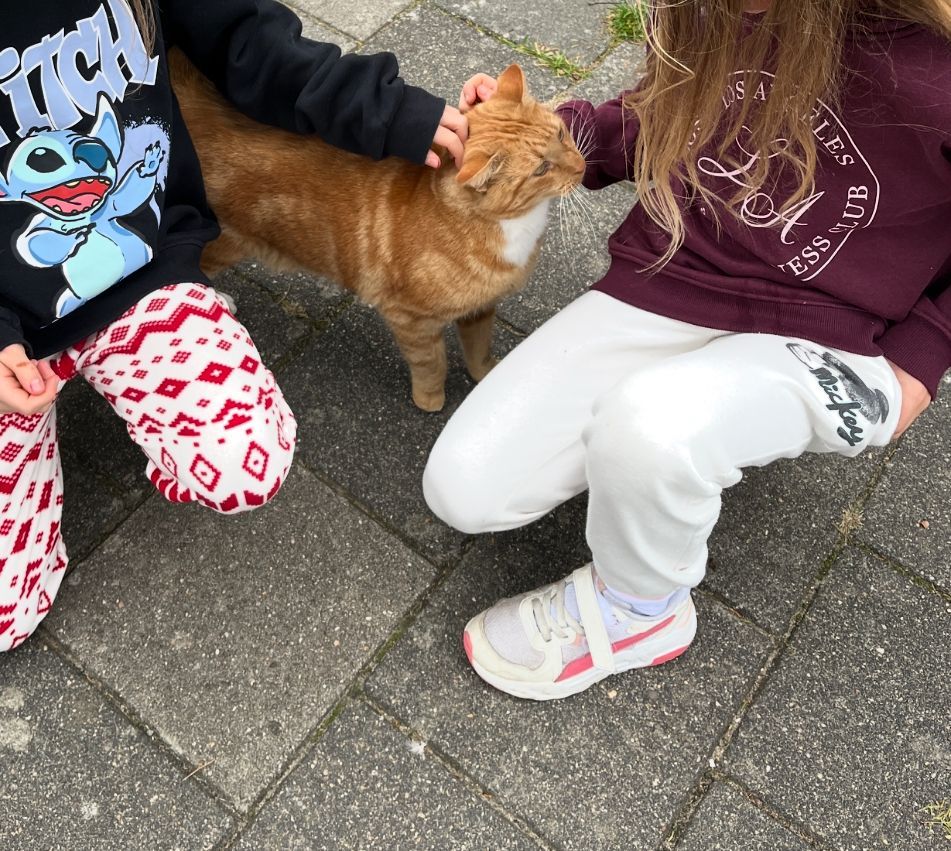 Terwijl zij weg waren, maakte ik met de meiden een kattenwandeling. We hebben dat laatst op social media gezien... mensen gaan dan wandelen en kijken welke katten ze tegenkomen, dat vonden ze wel leuk, haha! We zagen niet veel katten, maar de katten die we tegenkwamen wilden wel wat aandacht, dus het was geslaagd!