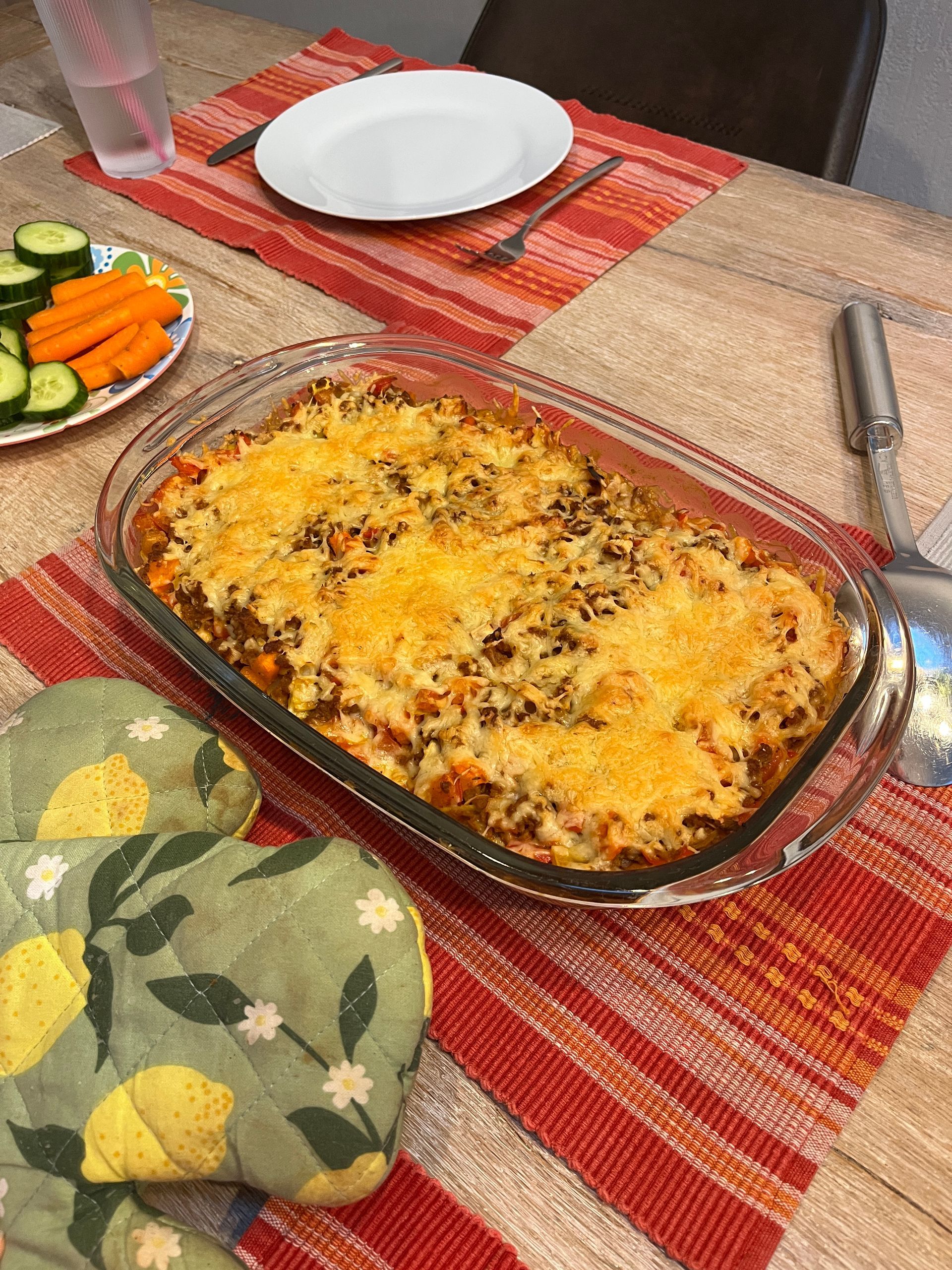 Maandagavond maakte ik lasagne. Normaliter kookt 1 van de kinderen op maandag, maar dat was even doorgeschoven naar de woensdag... ook prima! Ik maakte een schaal lasagne en die ging helemaal leeg.