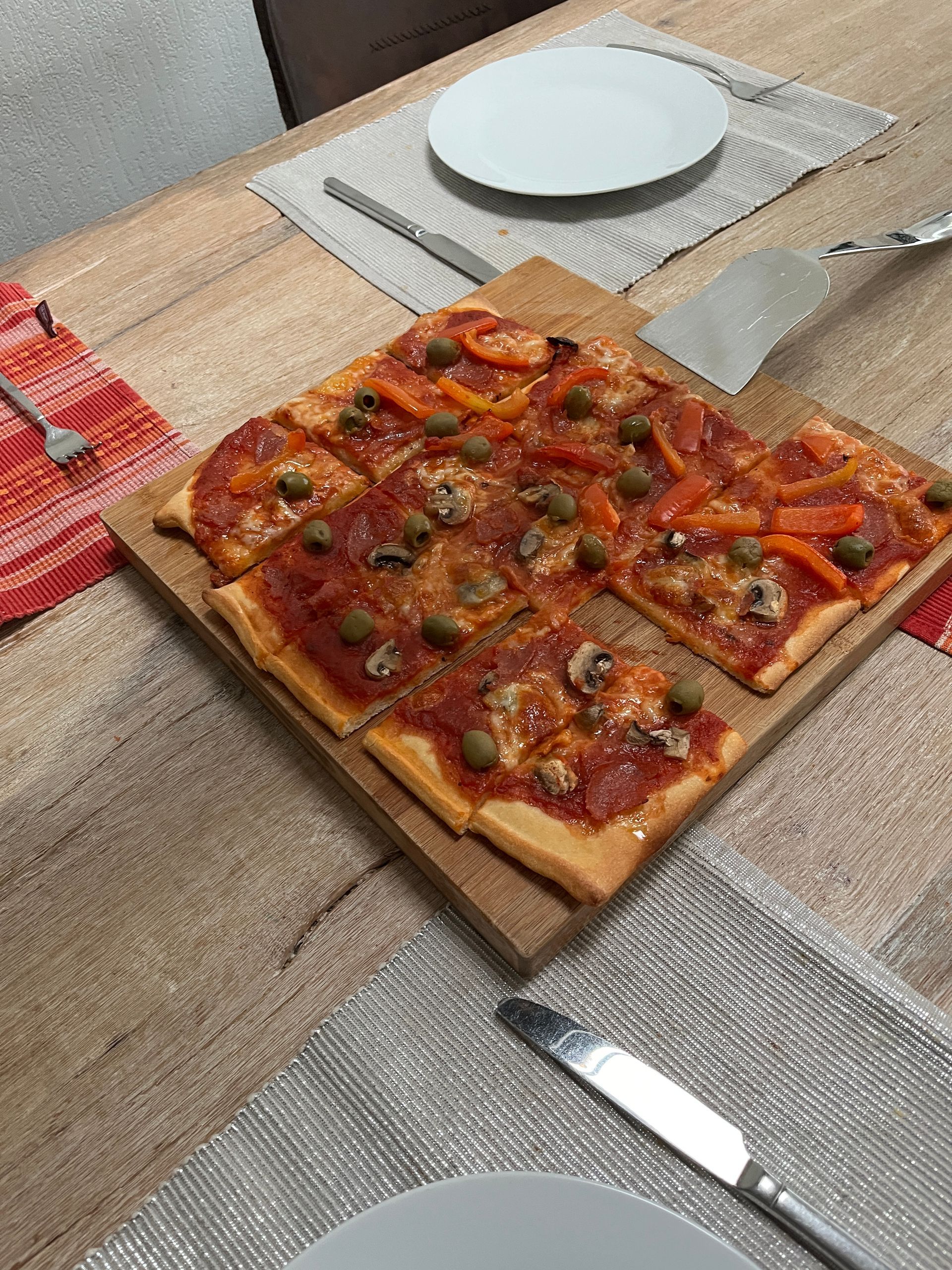 Sofie mocht daarna meteen aan de slag, want ze ging pizza maken! Ze had ook nog gezorgd voor een lekker toetje, dus dat was extra lekker... heerlijk!