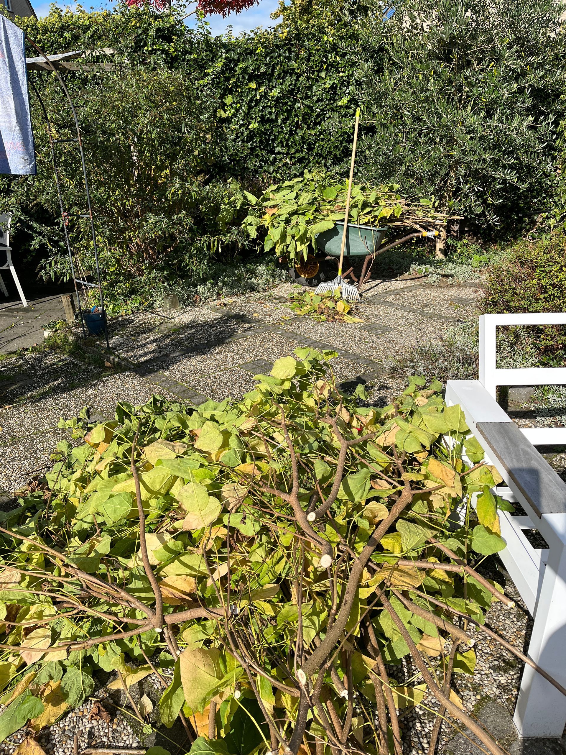 Donderdag waren we druk bezig in de tuin. Het is tijd om de tuin een beetje winterklaar te gaan maken... We hebben nu een grote tuin met veel groen, dus dat betekent in deze periode ook veel snoeien. Ik heb ook nog de laatste tomaten geplukt, de moestuin is nu wel vrij leeg. Binnenkort planten we knoflook, want die kunnen juist in Oktober / November de grond in en lekker groeien...