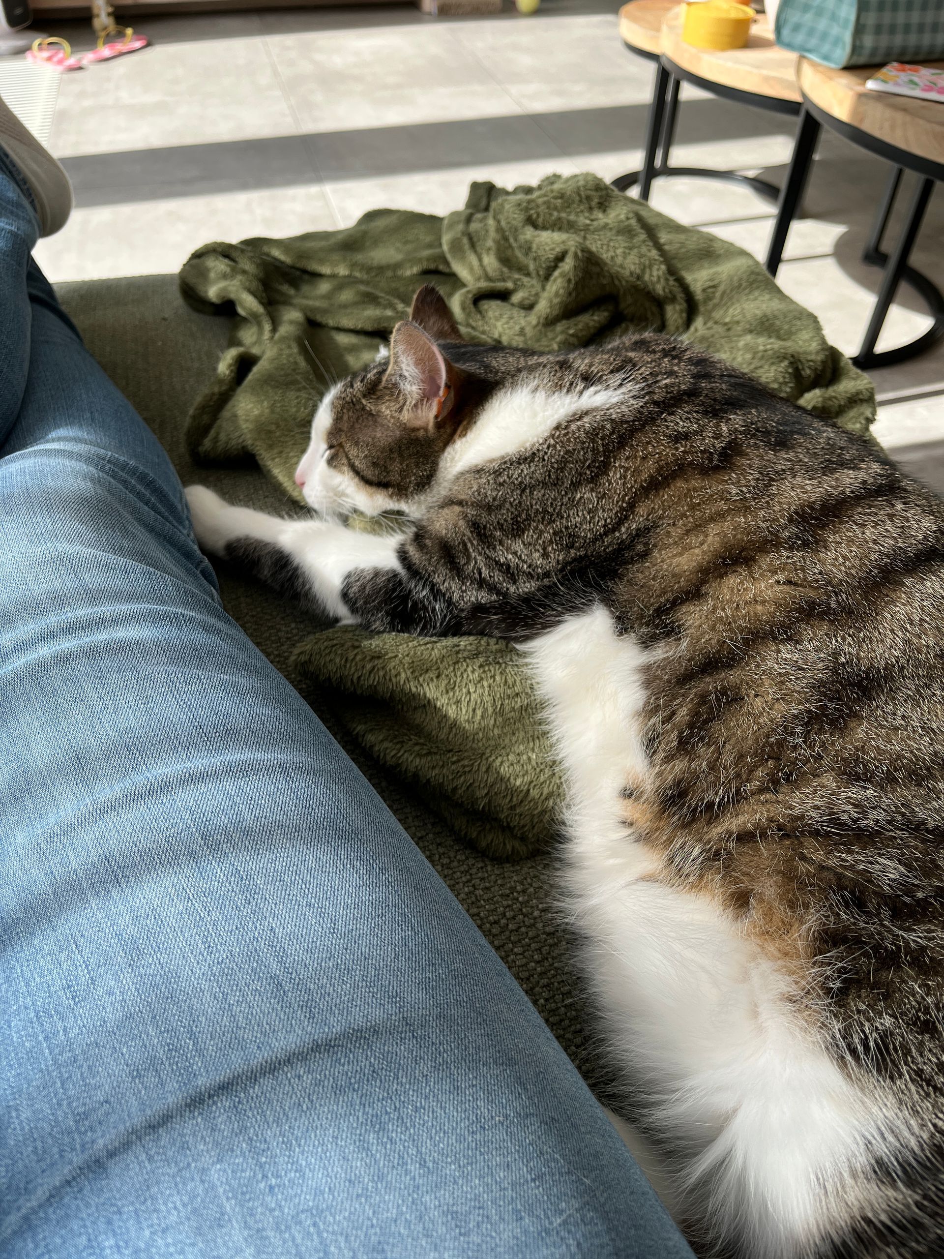 's middags plof ik even lekker op de bank neer na mijn wandeling. Ik pak mijn laptop er nog even bij voor een opdracht tussendoor en Bobby komt er gezellig bij <3 'S avonds check ik nog even of het weekoverzicht online staat en zo vliegt de dag voorbij.
