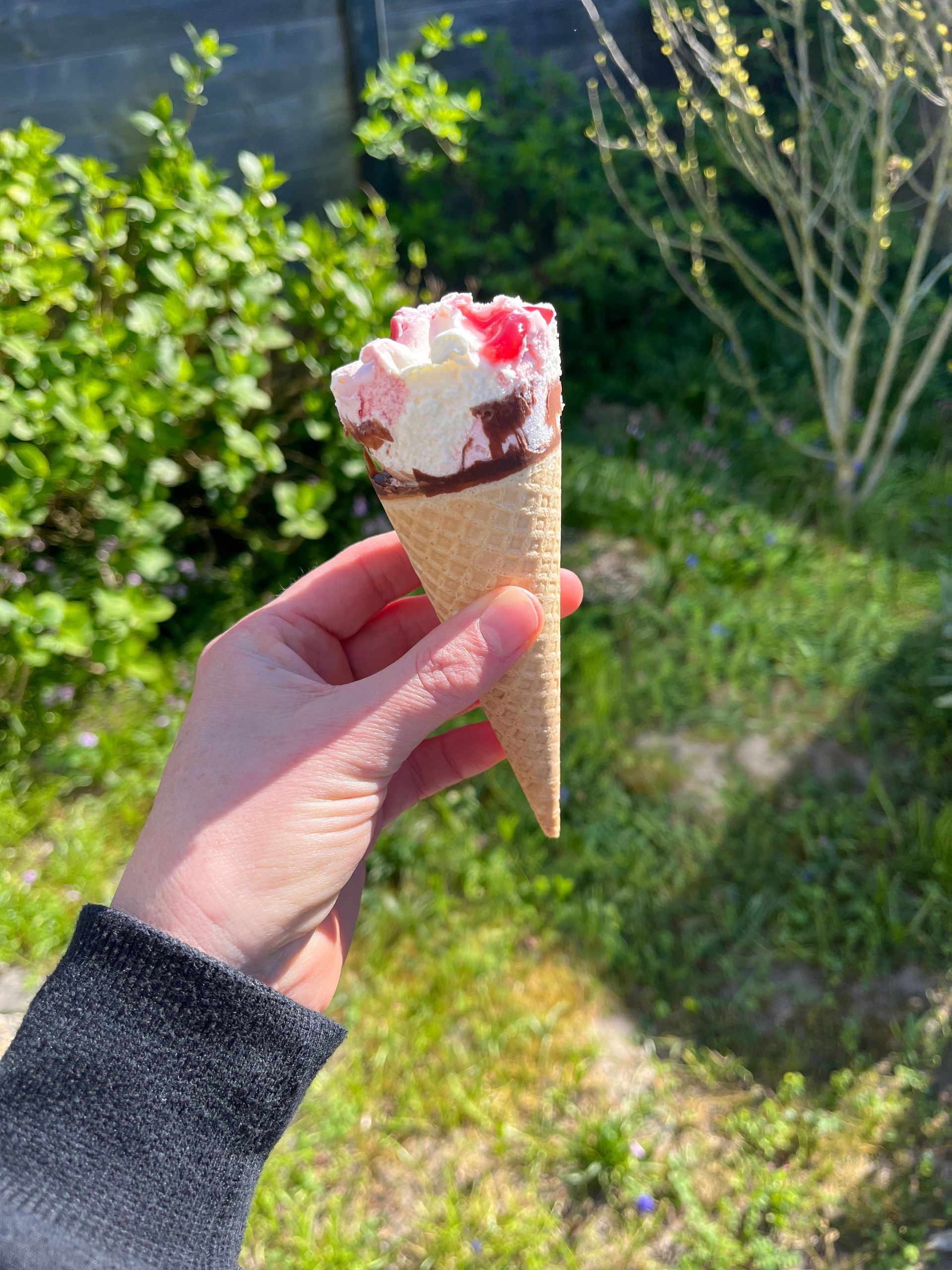 Aan het eind van de middag maak ik samen met Sara en Thijs nog een lange wandeling. Op de terugweg wandelen we langs de supermarkt voor een ijsje, lekker!!