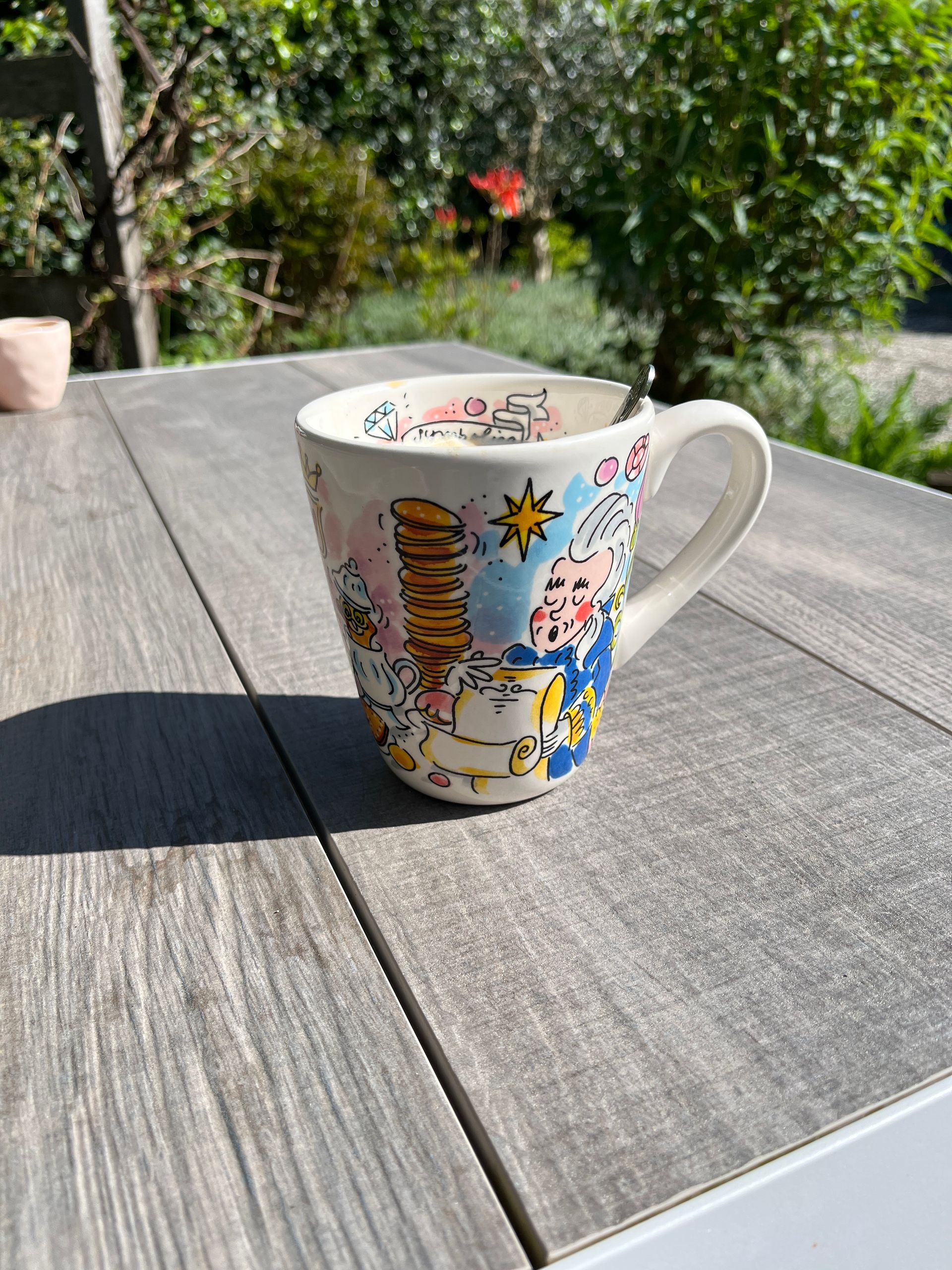Donderdag wandel ik samen met Dustin naar de Gamma voor wat klus spullen en daarna is het tijd voor koffie. Sofie had laatst deze Blond Amsterdam mok (affiliate link) bij de Efteling gekocht, dus die gebruik ik ook graag ;)