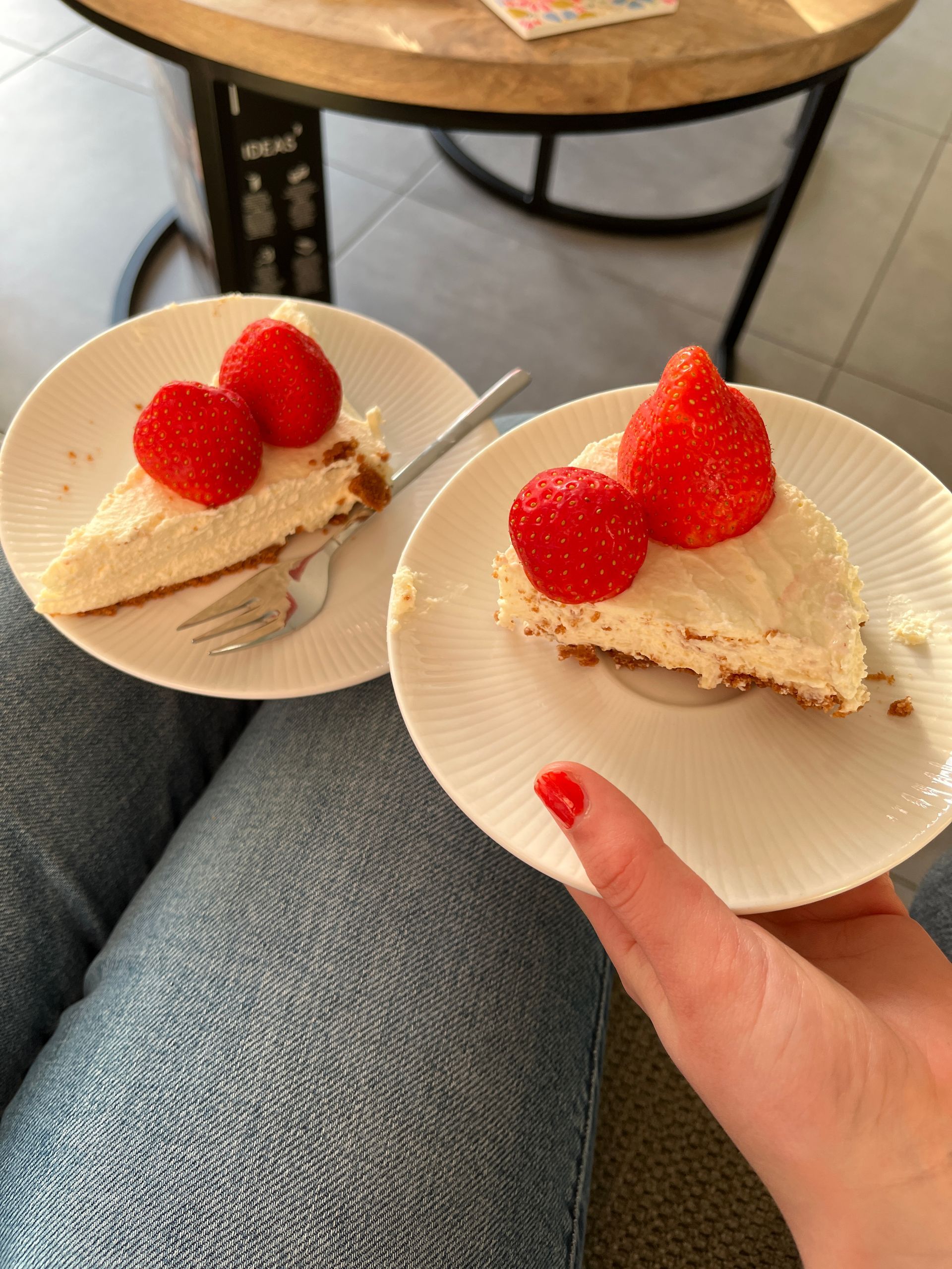 Zondagavond hebben we lekker de bbq aangestoken, zoals ik in het weekmenu ook al vertelde. Daarna hebben we de cheesecake geproefd die Sara had gemaakt, met lekker verse aardbeien, heerlijk!