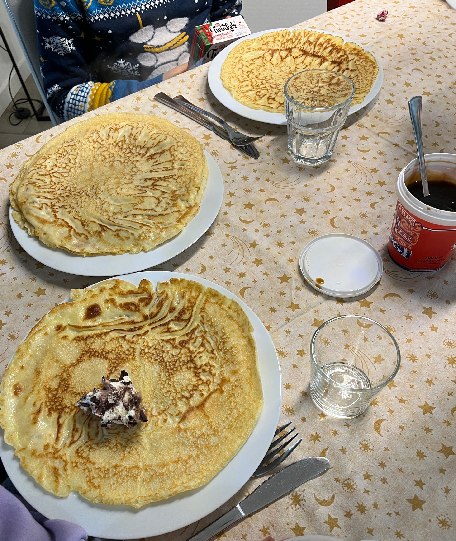 Als iedereen is uitgeschilderd rijden we terug naar opa en oma en lunchen we met pannenkoeken, heerlijk!