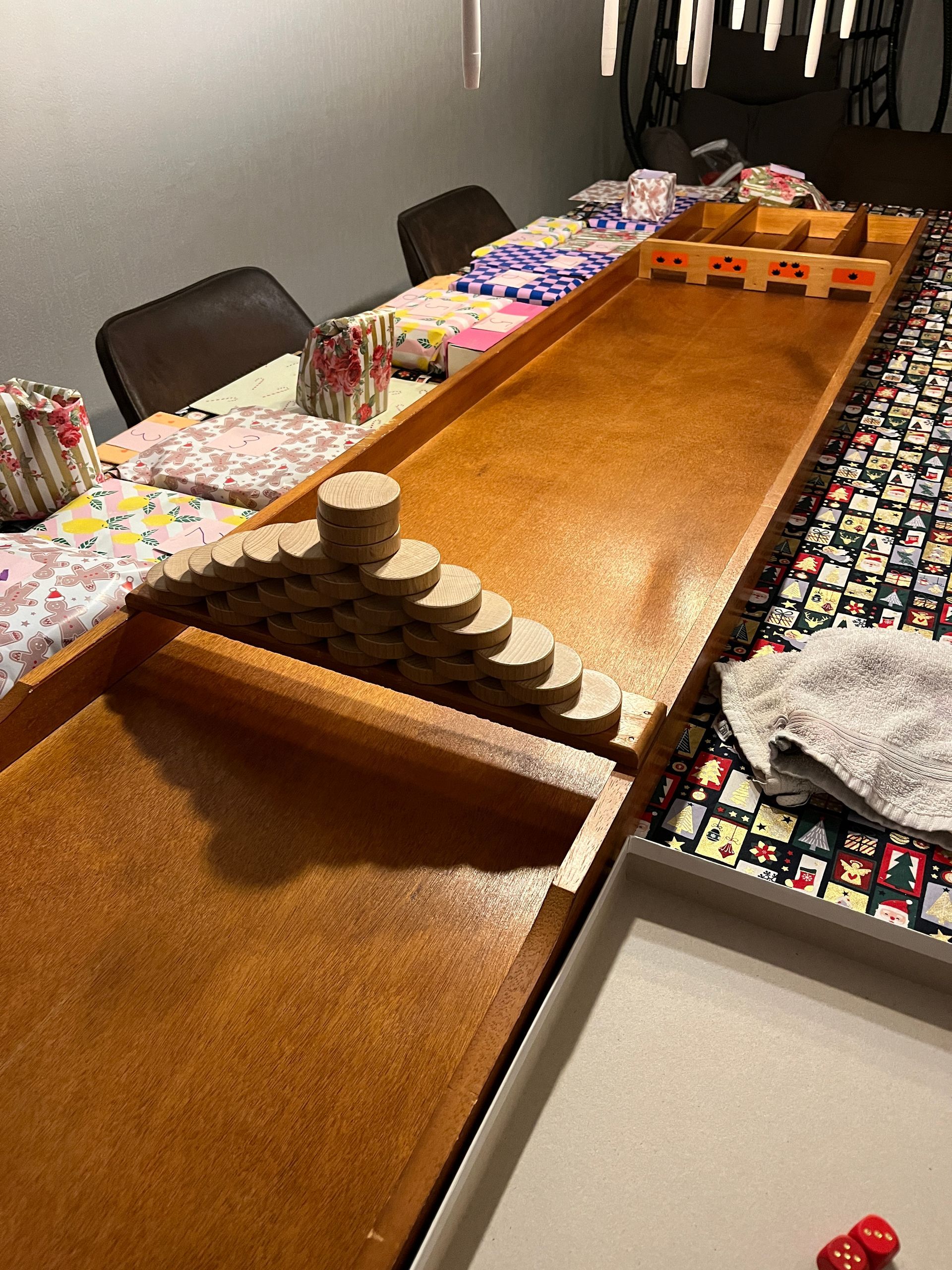 In de avond vermaken we ons met verschillende spellen. Ik heb vorig jaar met sjoelen (affiliate link) een leuk spel bedacht waarbij iedereen een cadeautje kon winnen. Iedereen was daar zo enthousiast over, dat we het spel dit jaar weer deden! Daarna nog een potje 30 seconds en toen was het al 23.30u... de avond vloog voorbij!