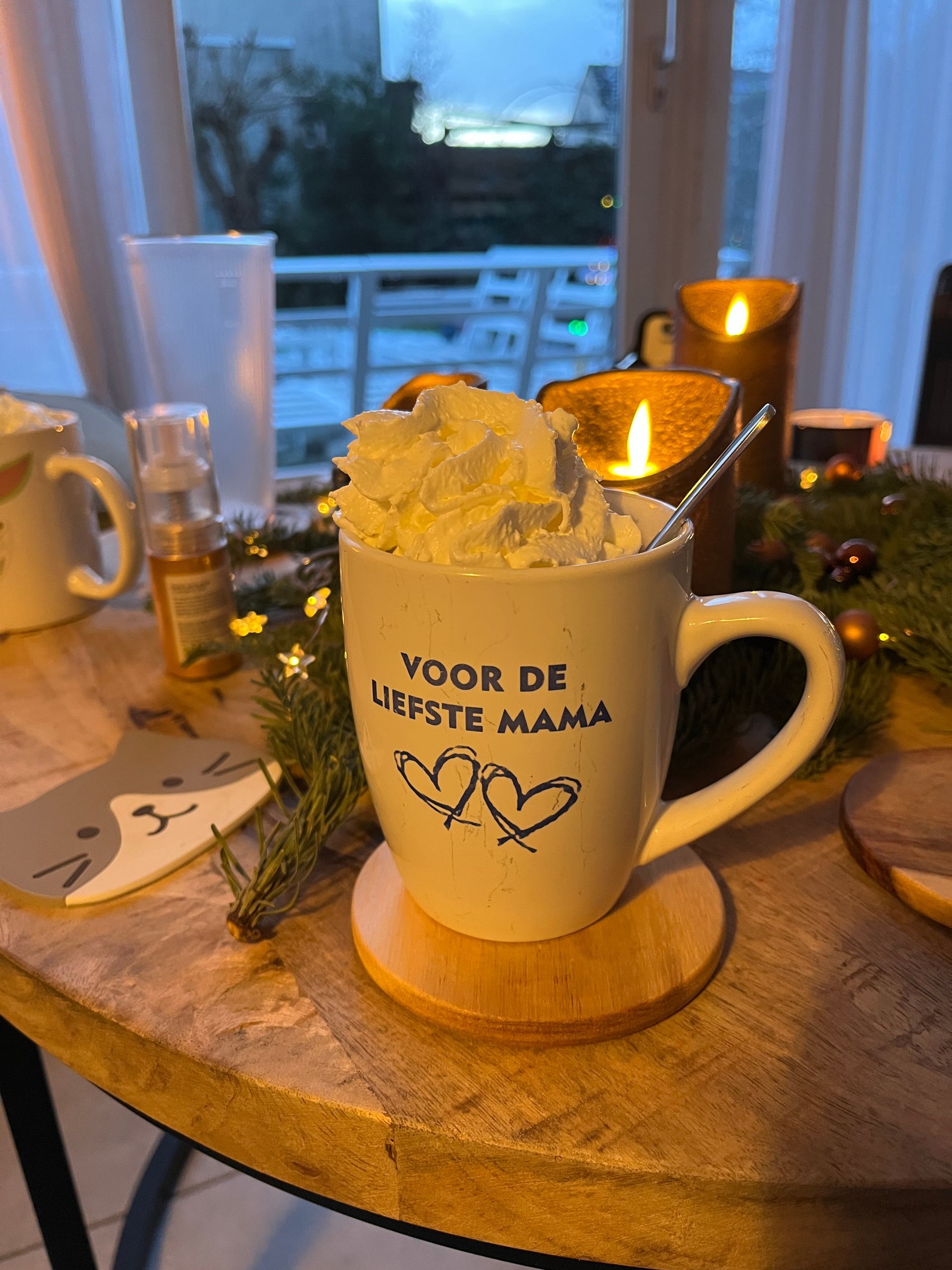 En na een extra lange wandeling, konden we thuis opwarmen met warme chocolademelk... heerlijk! Inmiddels hadden we afgesproken dat de meiden nog een nachtje zouden blijven. De wegen rondom Utrecht waren slecht te rijden en natuurlijk moet niemand risico nemen! De meiden vonden het ook niet erg, dus dan vonden wij het ook goed.