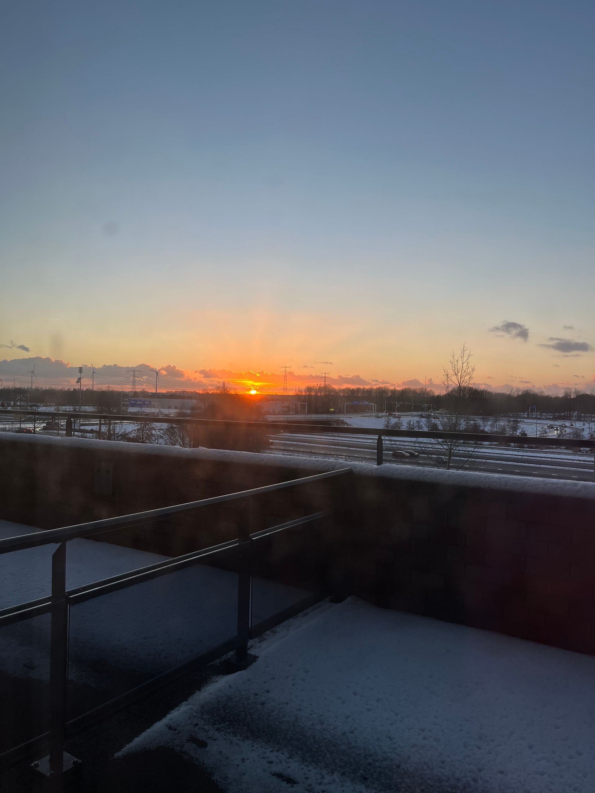 En we zagen een prachtige zonsondergang. Na alle sneeuw scheen nu volop de zon.
